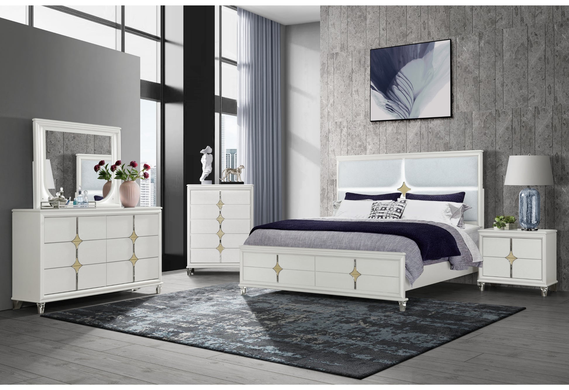 A complete king-size bedroom suite designed for contemporary spaces, the ORION GOLD KING BED GROUP brings a cohesive, stylish look with practical storage and durable construction. Perfect for those seeking a sophisticated, low-maintenance centerpiece for the master or guest suite.