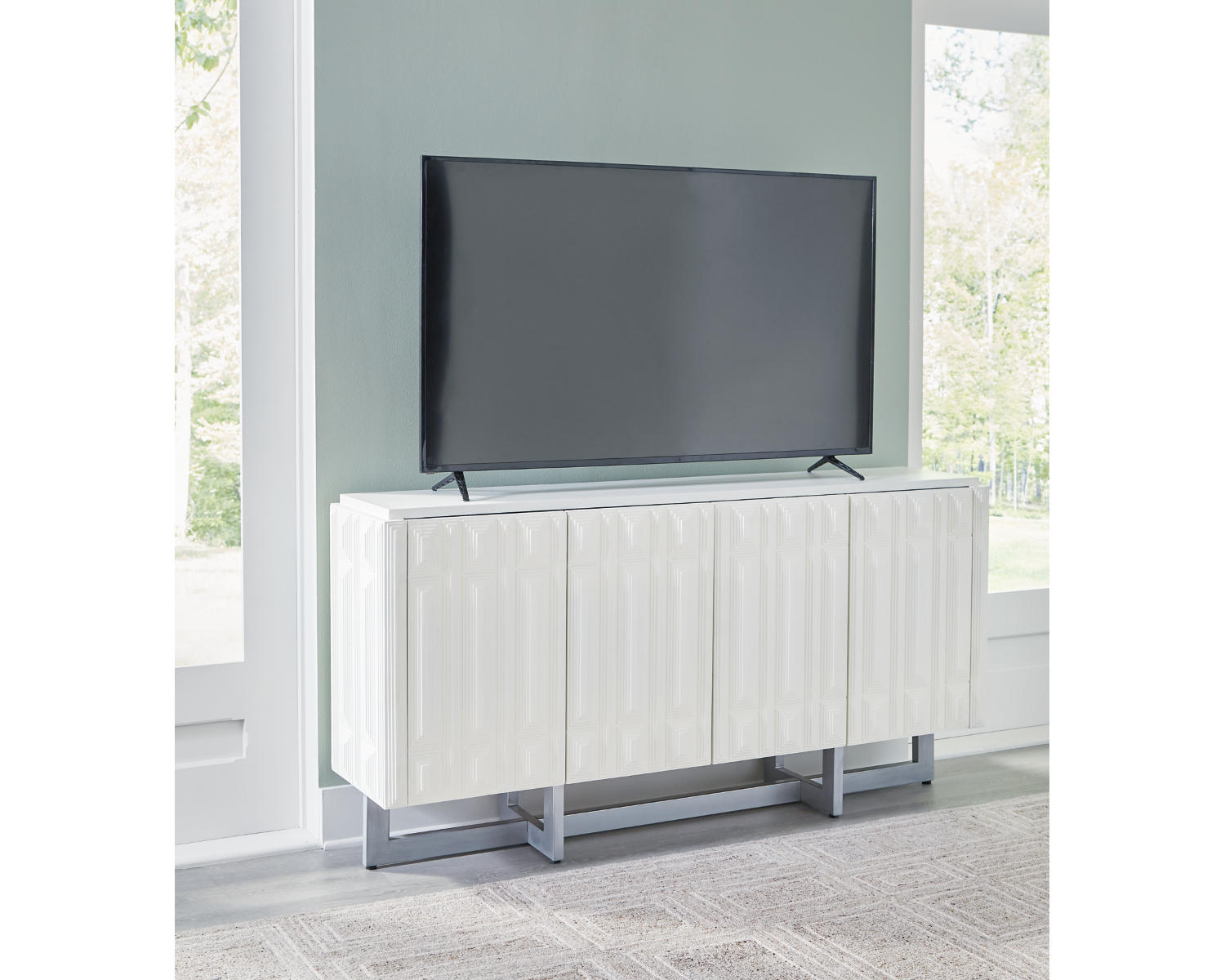 Meet the Ornawel Accent Cabinet in a Distressed White finish—an elegant storage piece that adds character to any room. Designed for spaces that blend style with everyday function, this cabinet offers a refined silhouette and practical surface space for decor or essentials.