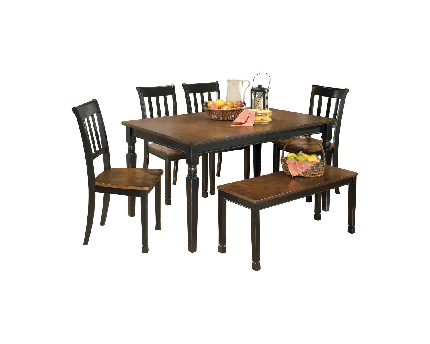 Elevate family meals and casual gatherings with the Owingsville dining set. This complete dining ensemble includes a table, four chairs, and a bench, all finished in a timeless black and brown tone that fits a range of decor styles. Built for everyday use, it combines practical design with a clean, inviting look.