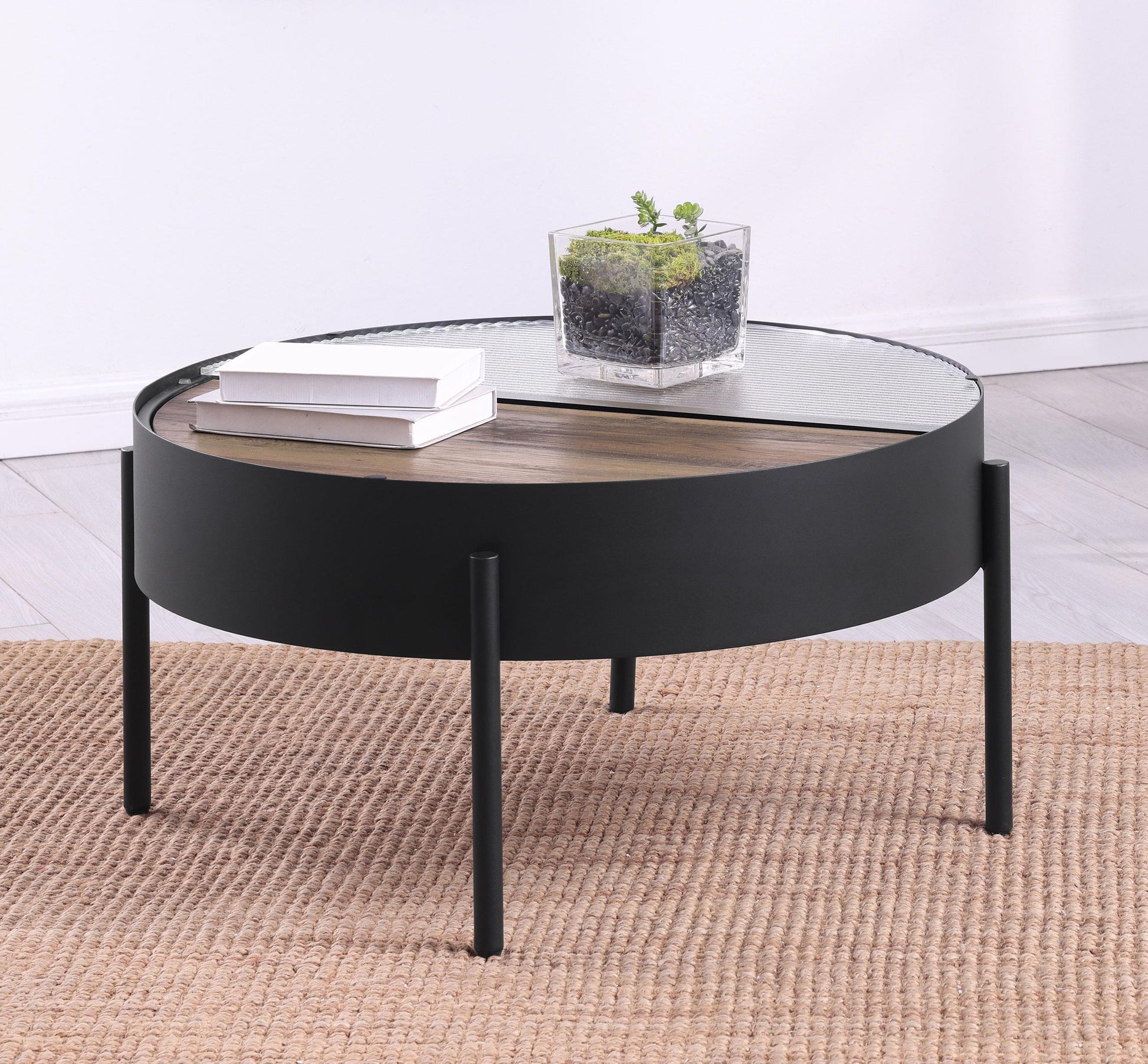 Ozella Round Coffee Table with Hidden Storage Sandy Black