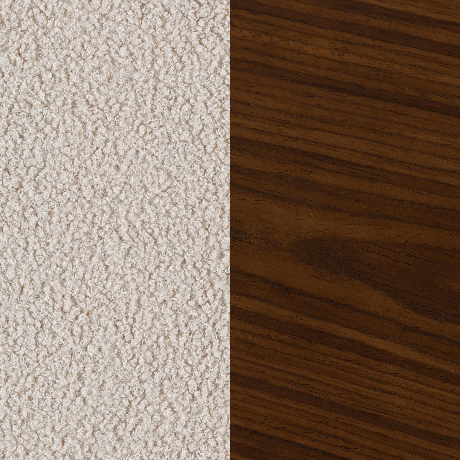 - Beige boucle upholstery adds texture and warmth to any living area.