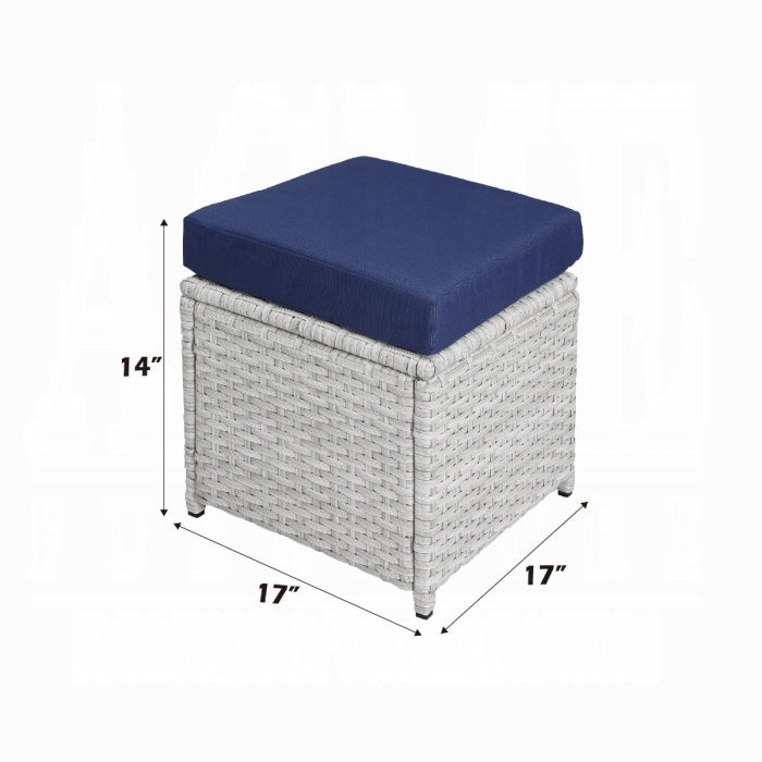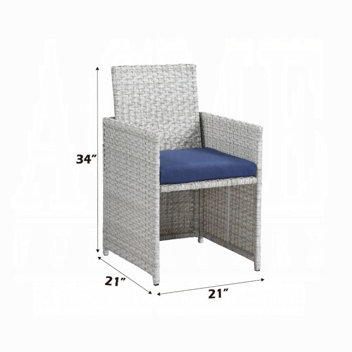 Create a touch of elegant flow on your patio or balcony with the Paitalyi 9PC Bistro Set. This blue fabric and wicker outdoor collection is designed for entertaining, offering a stylish, versatile seating arrangement. The set includes a cocktail table with a glass top, four chairs, and four backless cubes with fabric cushions, providing comfortable seating for eight.