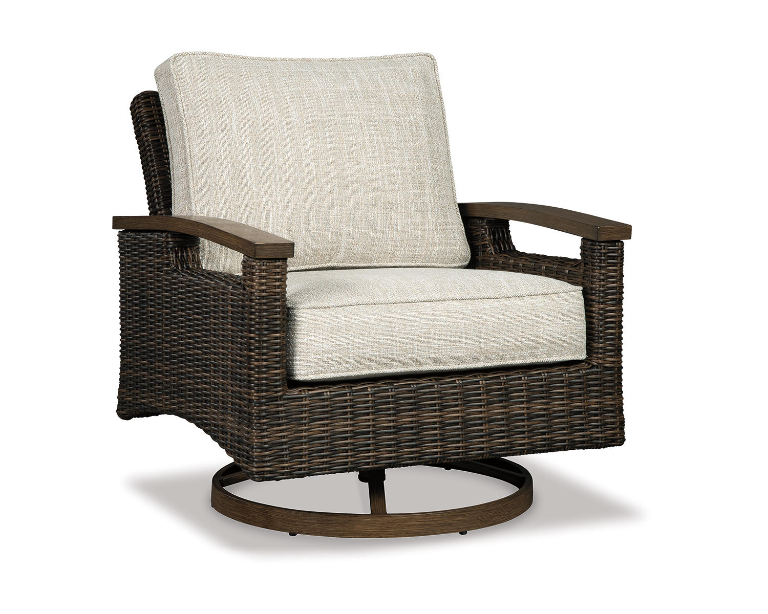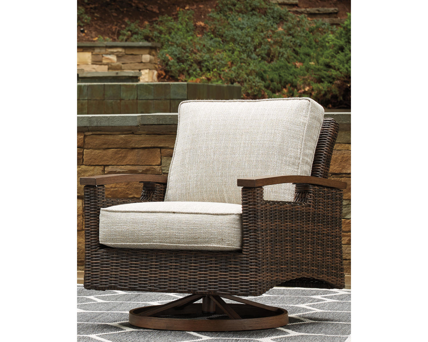 Meet the Paradise Trail Swivel Lounge Chair pair—a clean, versatile seating solution designed for relaxed comfort. With a medium brown finish, these chairs bring warmth to any space and offer a smooth swivel for flexible lounging.
