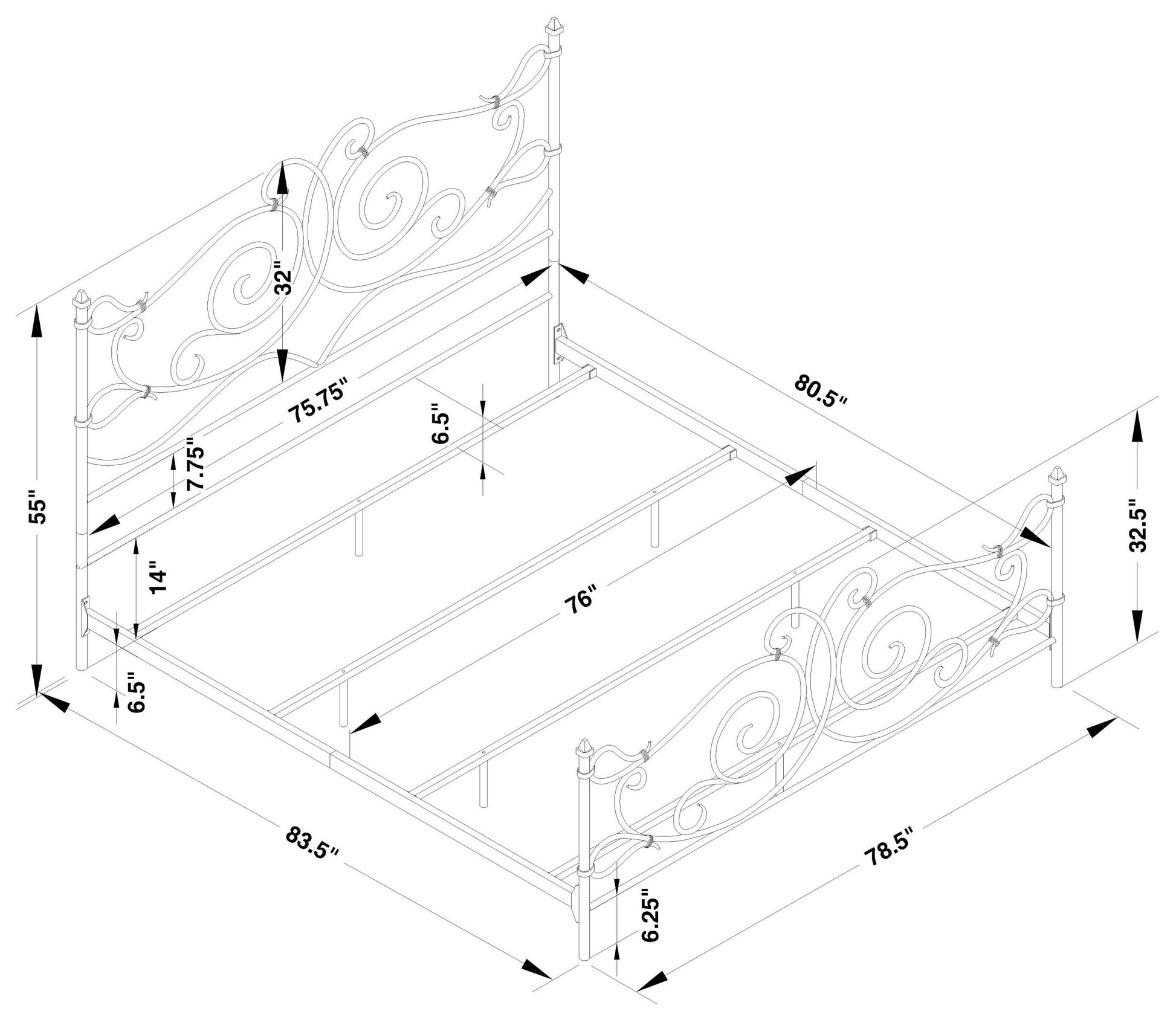 Parleys Metal Eastern King Open Frame Bed — Dark Bronze
