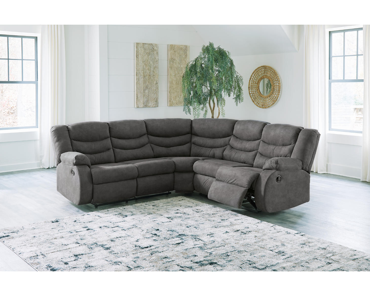 Meet the Partymate 2-Piece Reclining Sectional in Slate—a versatile seating solution designed for family rooms, living spaces, and entertaining areas. This two-piece set offers relaxed reclining comfort with a clean, contemporary silhouette that fits a range of decors. Perfect for everyday family moments, movie nights, and social gatherings.