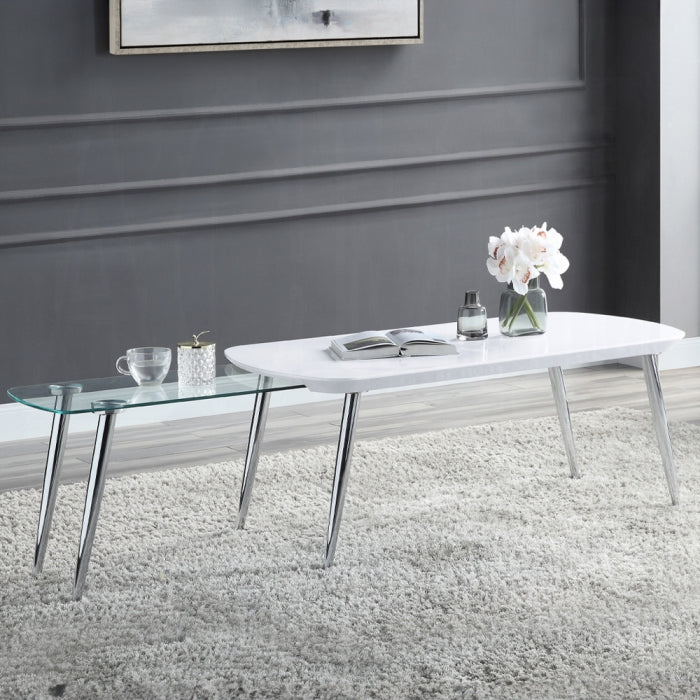 Meet the Patina Coffee Table, a modern centerpiece designed for living rooms, apartments, and busy homes. With a White & Chrome finish, a sturdy metal frame, a glass top, and a durable composite wood core, it combines contemporary style with everyday practicality.