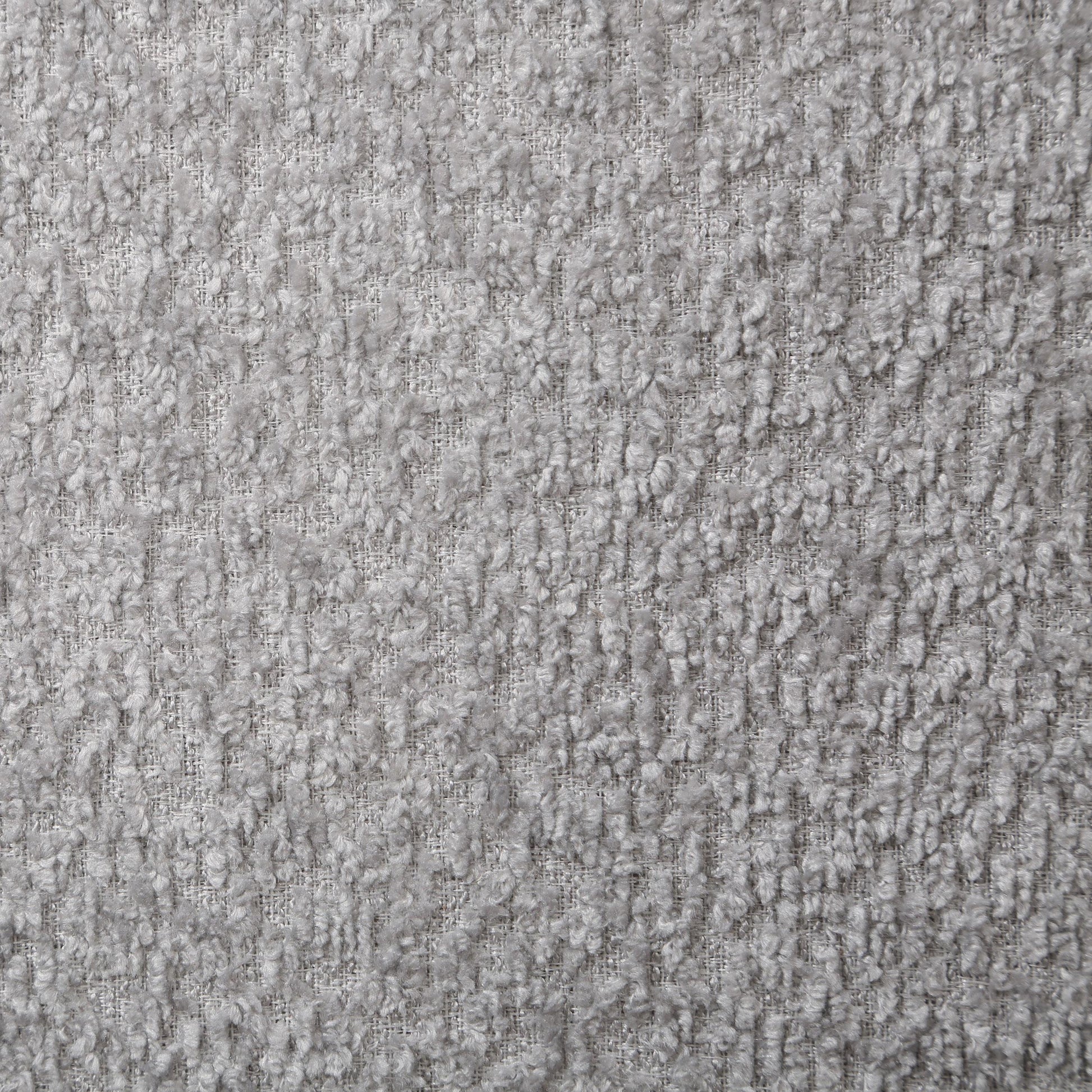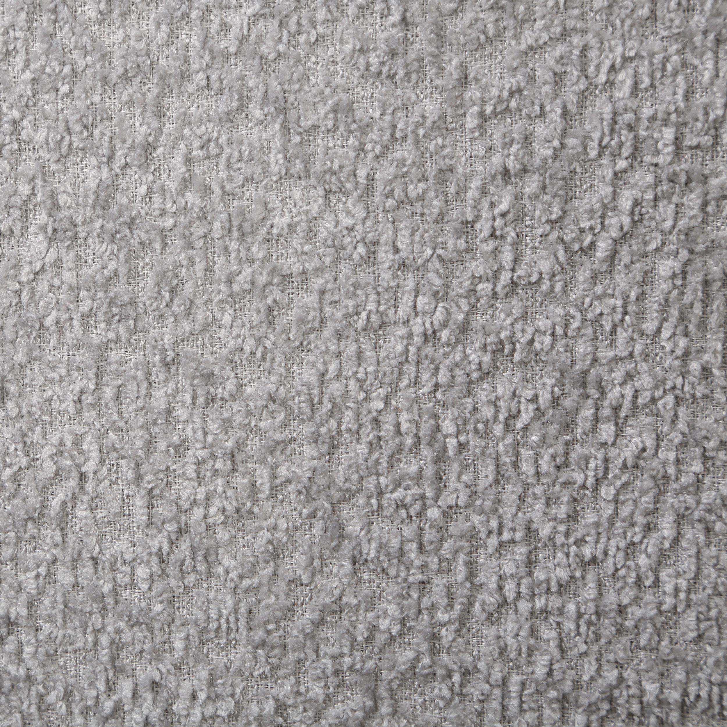- Soft grey boucle upholstery for a contemporary, inviting look