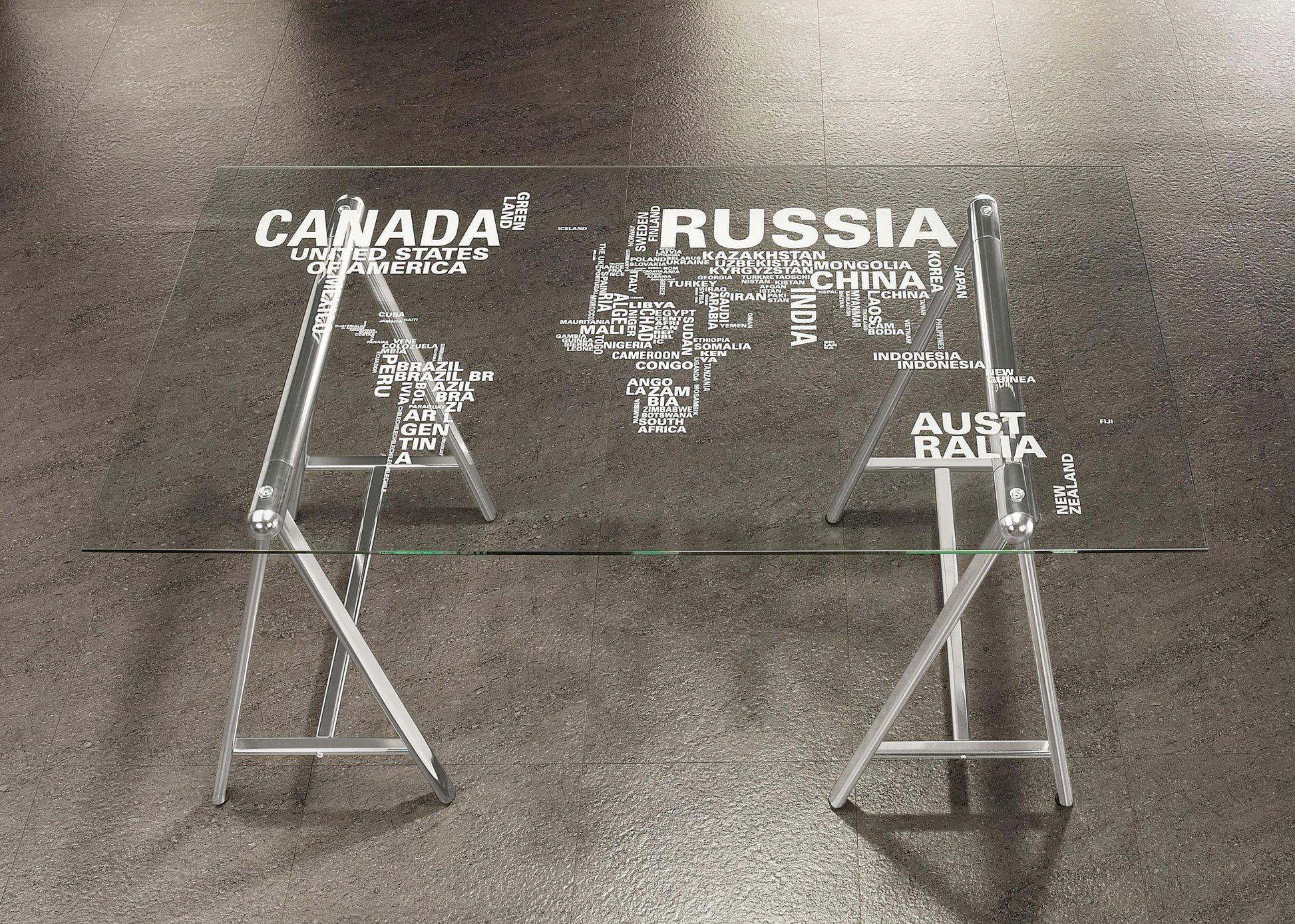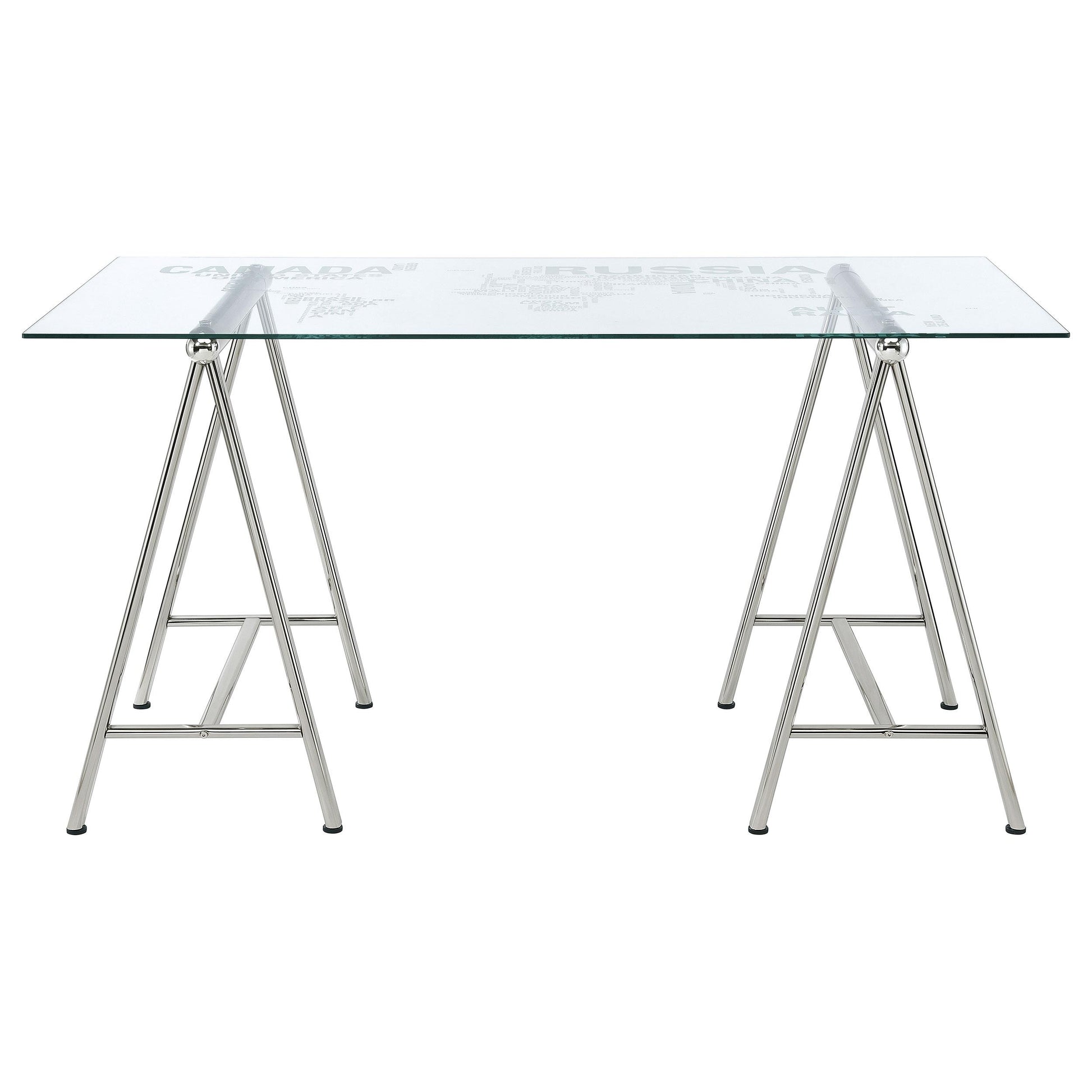 Patton 59-Inch Glass Top Word Cloud Writing Desk — Nickel