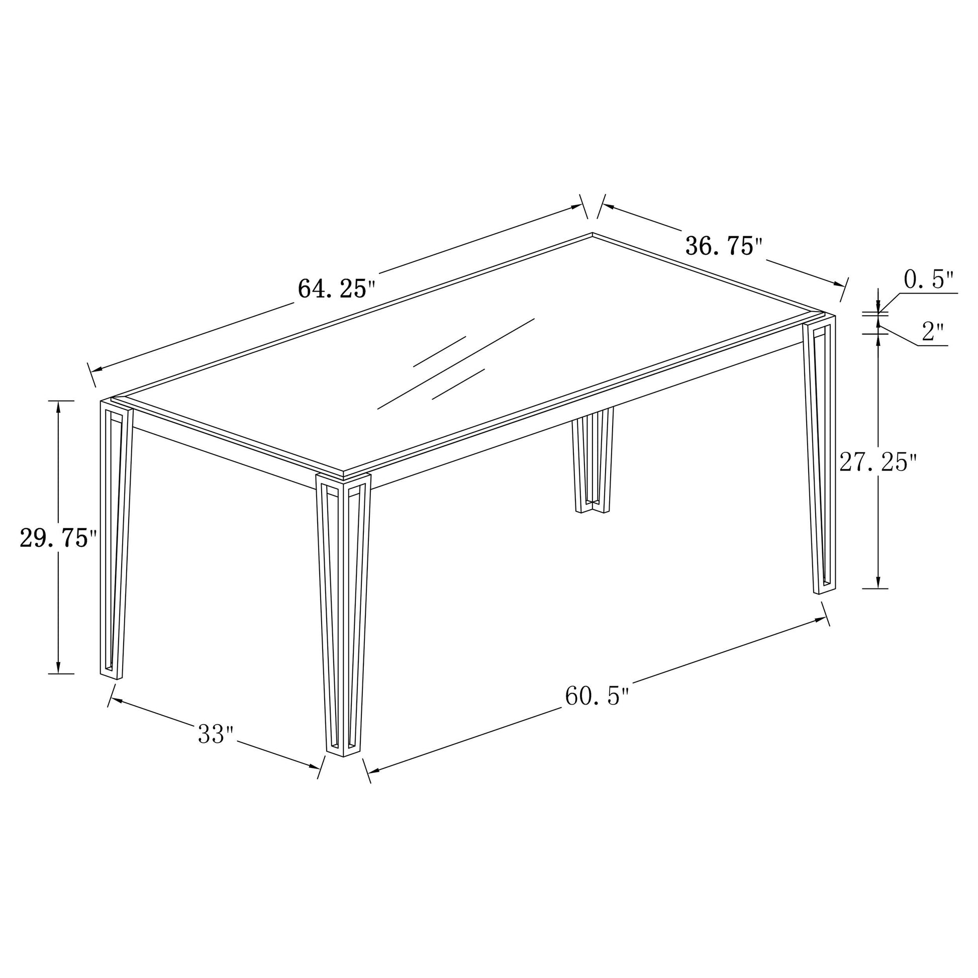 - 64-inch rectangular glass top for a spacious dining surface