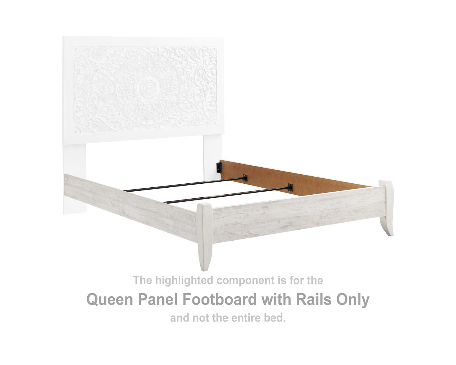 Paxberry Queen Panel Footboard with Rails – Whitewash