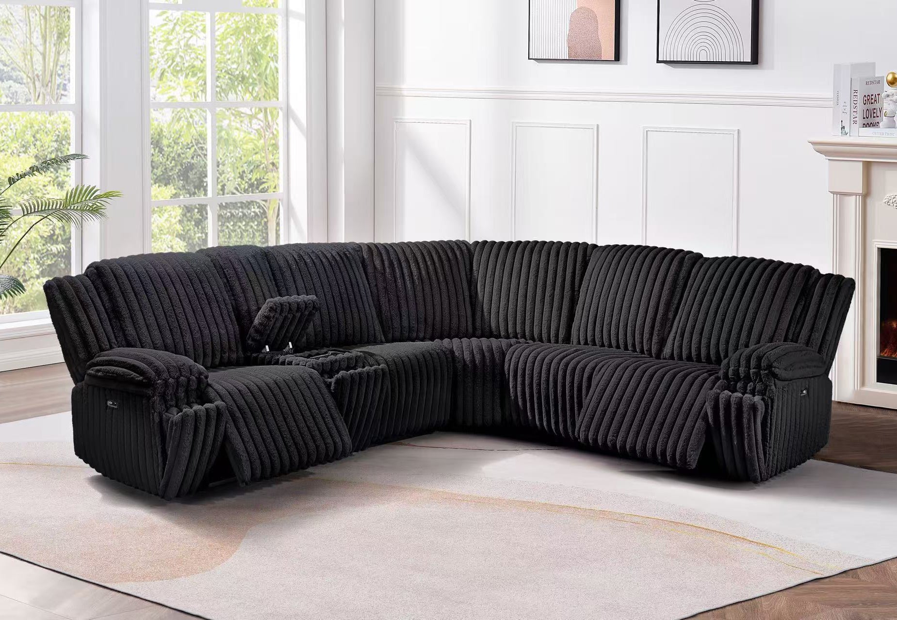 Meet Pelle Collection, a contemporary black sectional recliner sofa that blends modern design with everyday comfort. Crafted for living rooms, family spaces, and areas that welcome relaxed entertaining, it offers a cozy, inviting seating experience. With plush ribbed fabric, generous padding, and built-in reclining mechanisms on both ends, it’s ready to adapt to every moment of downtime.