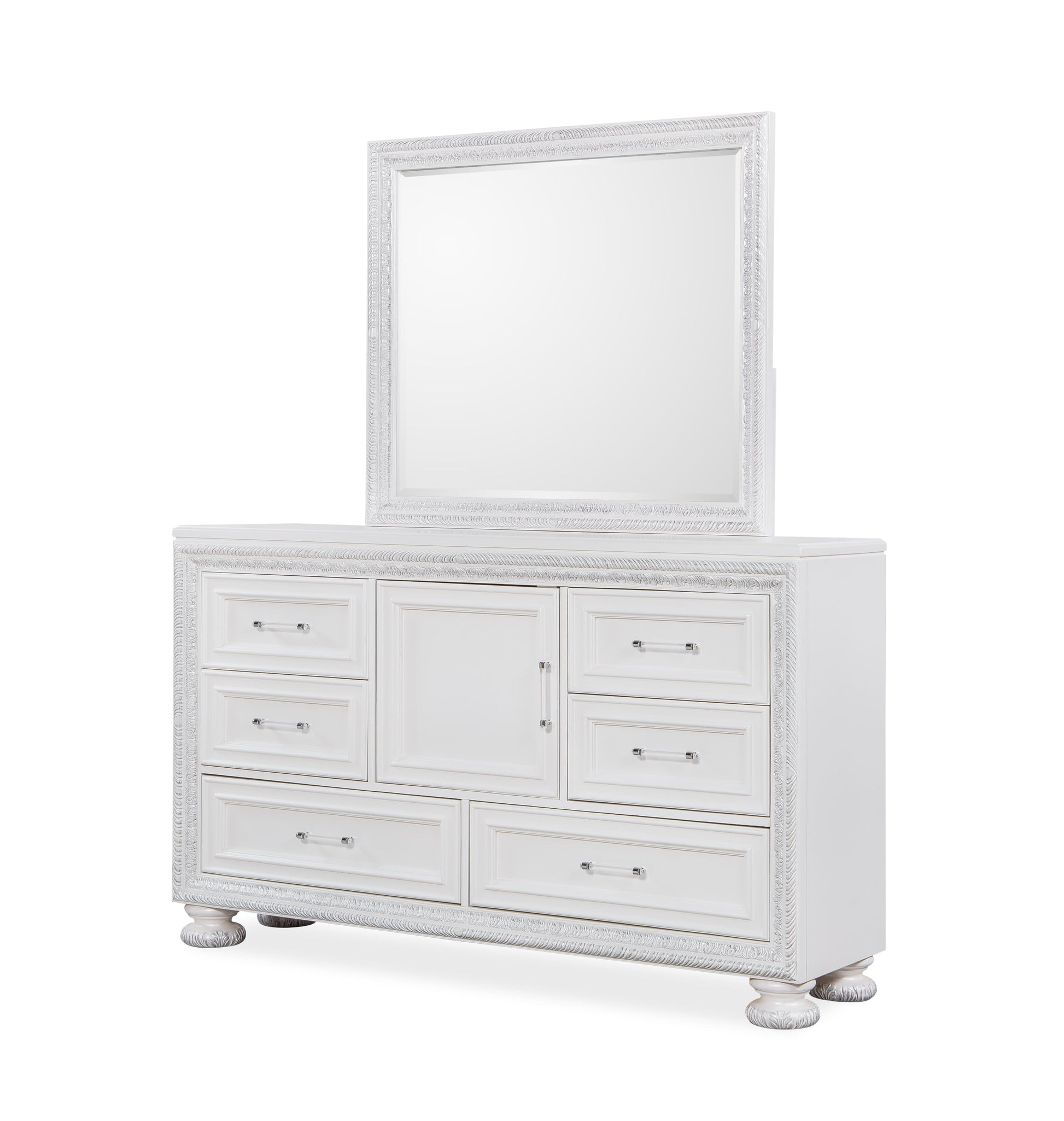 The Penta Bedroom Set blends timeless elegance with modern sophistication in a luxurious champagne finish. Designed for those who value refined style and everyday comfort, this collection centers on a grand bed with a striking headboard and footboard. Tufted panel accents and intricate carved details add texture and depth, while a spacious dresser provides smart storage for the room you live in daily.