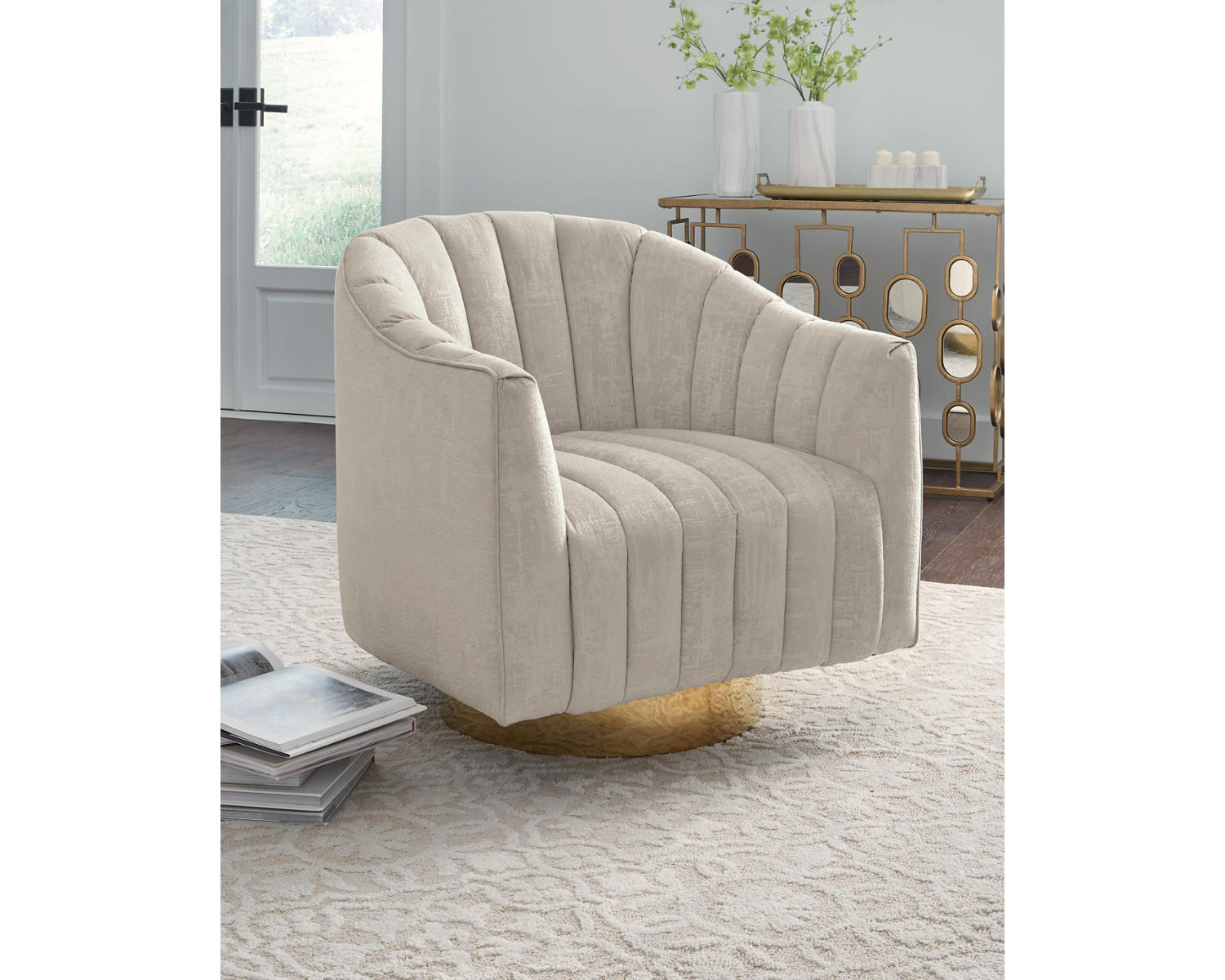 Discover the Penzlin Accent Chair—a stylish, pearl-colored swivel chair built for everyday living. It’s the kind of seating that elevates a sofa setup or brightens a quiet corner. With a clean silhouette and 360-degree swivel, it’s ideal for living rooms, bedrooms, or home offices.