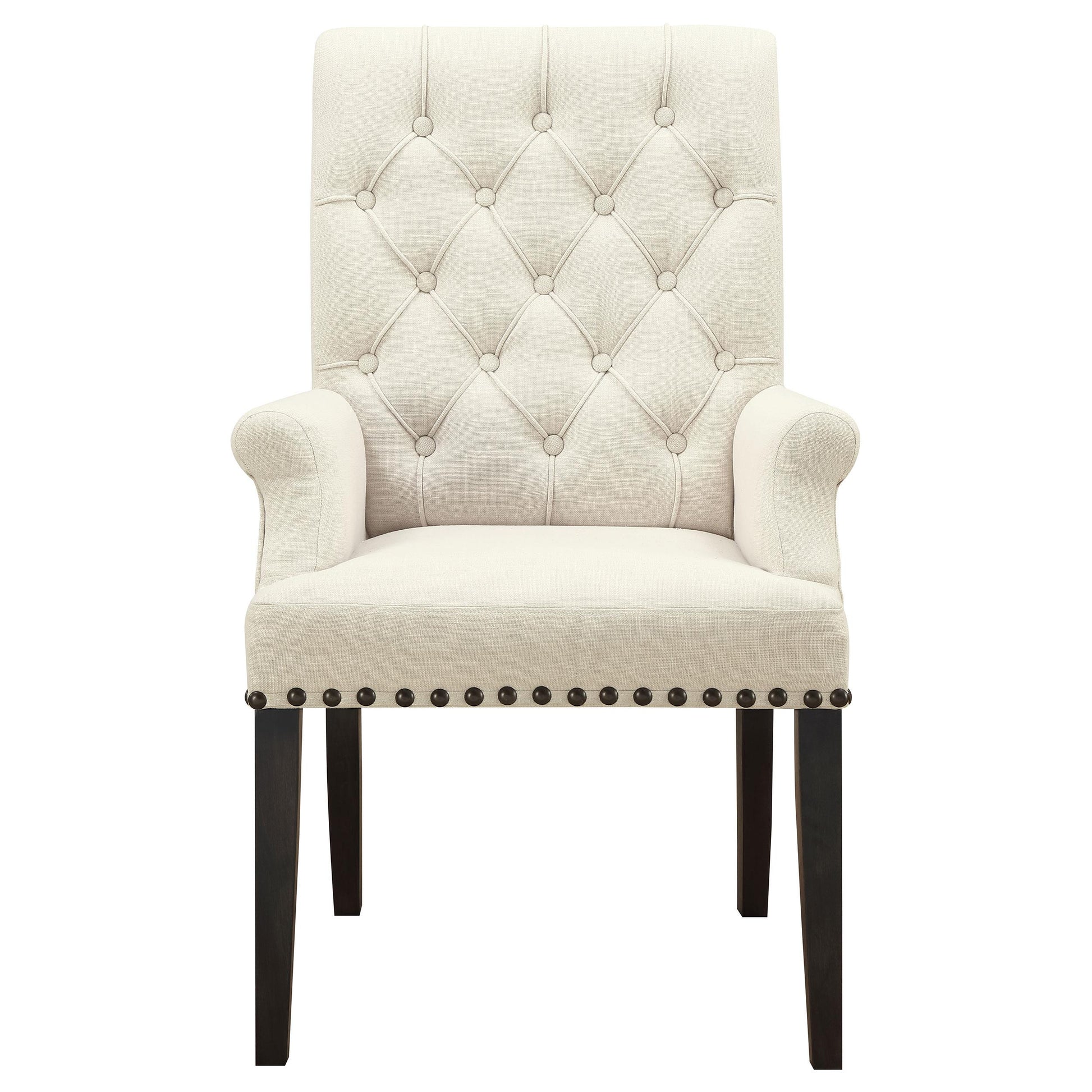 - Distressed noir finish adds warmth and versatility to any dining room