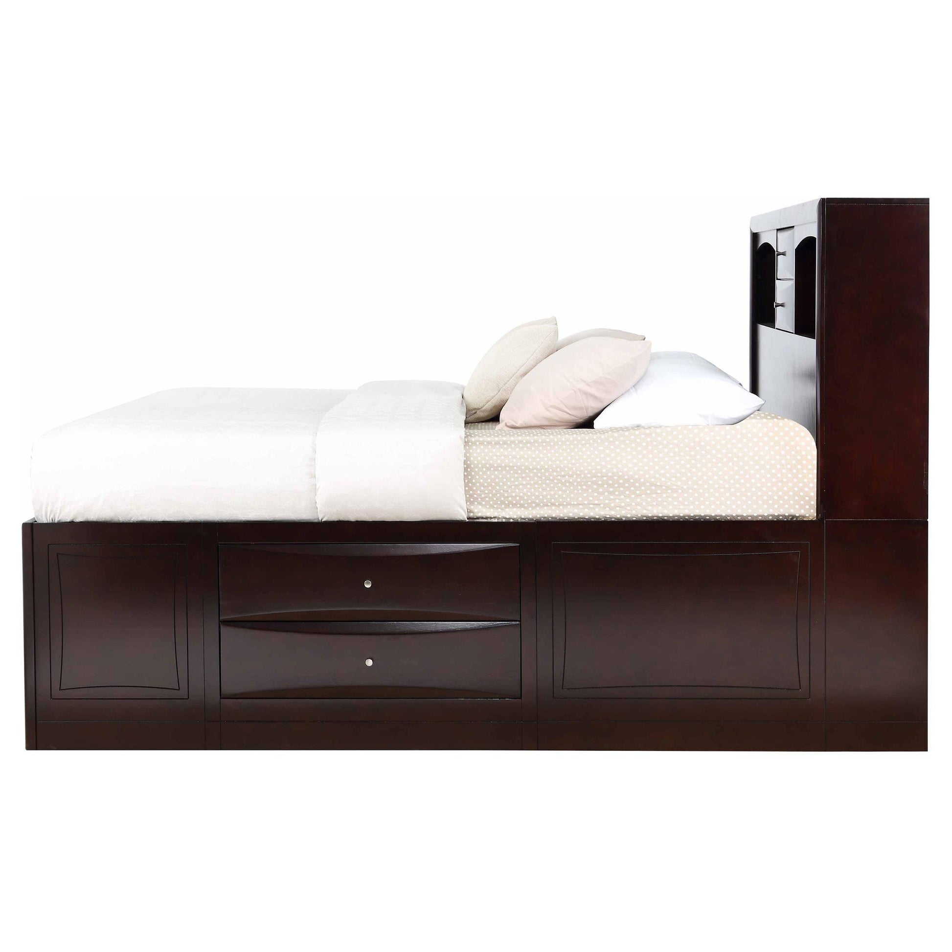Phoenix Wood Queen Storage Bookcase Bed Cappuccino