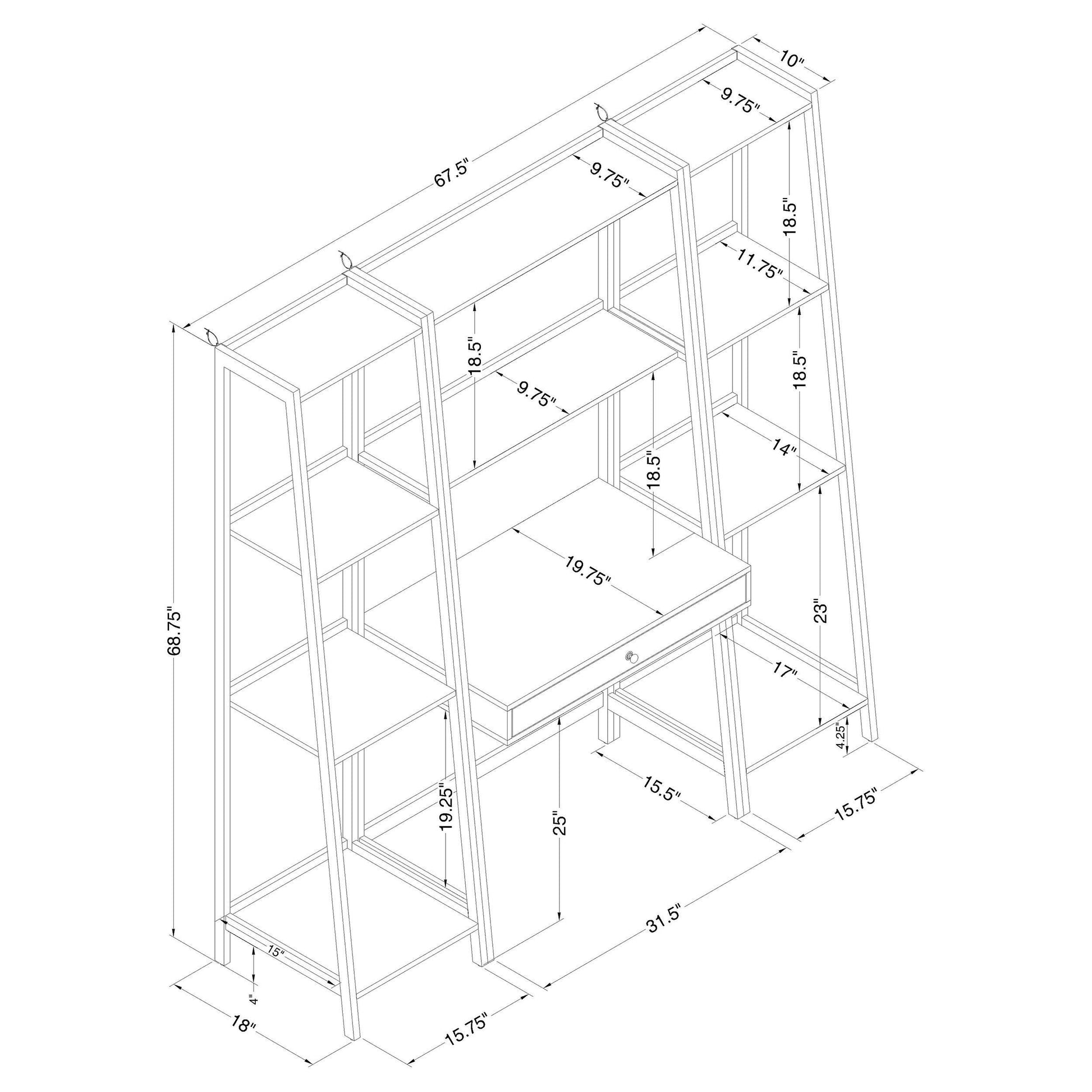 - Three-piece set includes ladder desk, bookcase, and storage component for a cohesive look
