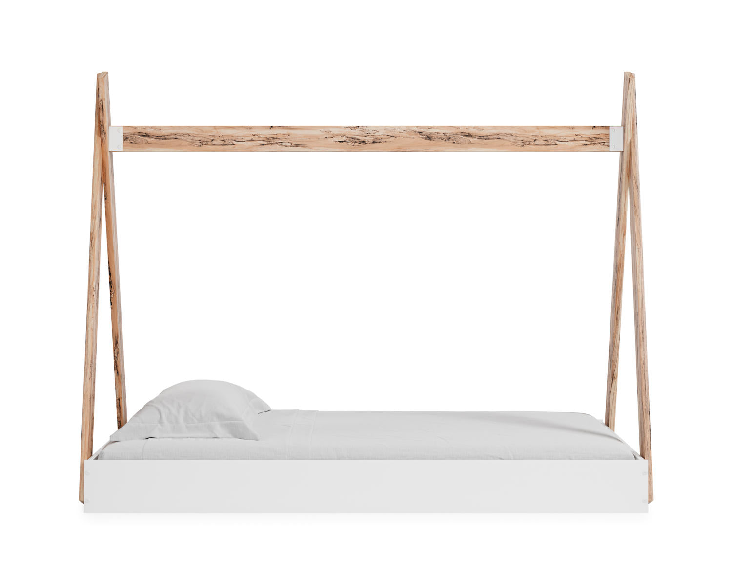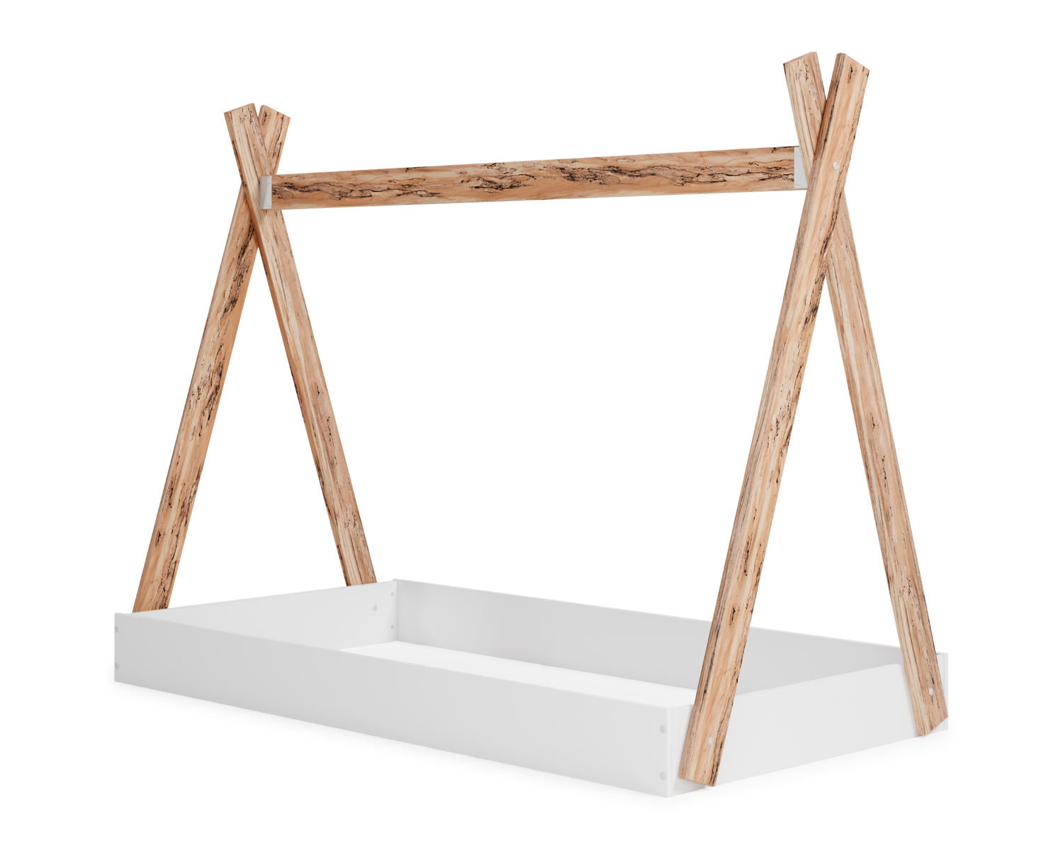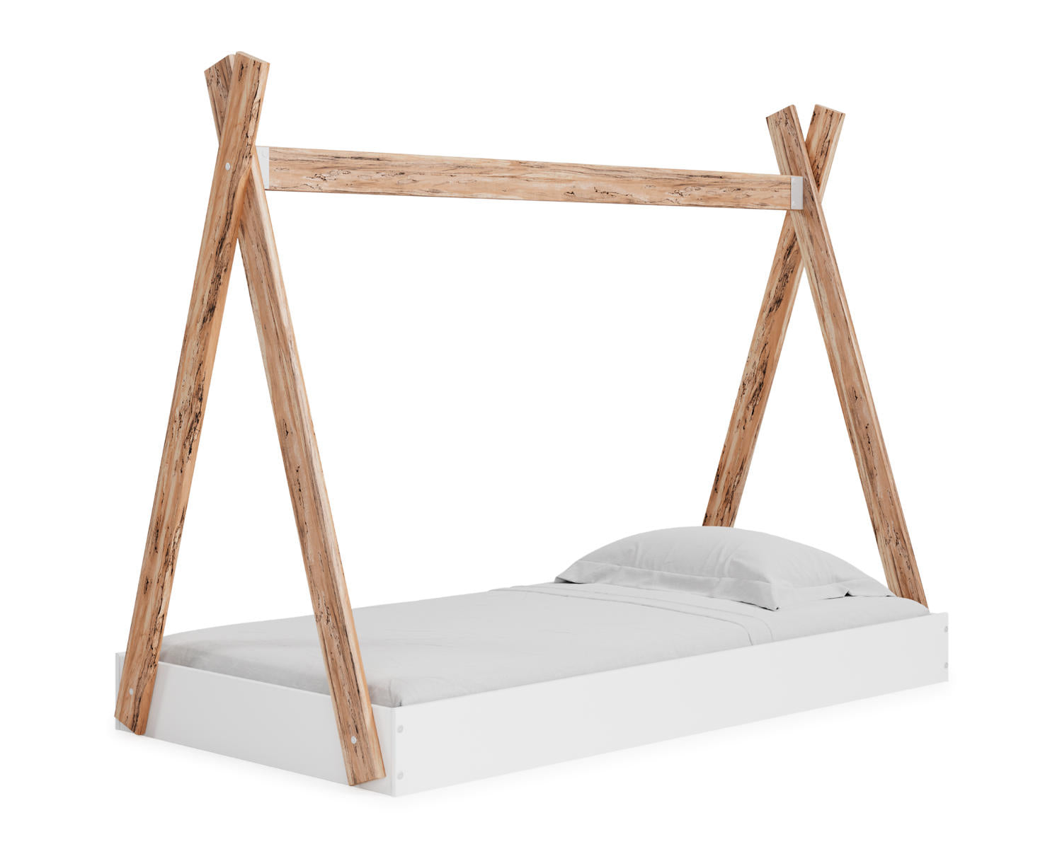 The Piperton Twin Tent Complete Bed in Box is a space-saving, playful sleep solution designed for kids, teens, and busy households. It combines a twin bed frame with a built-in tent-inspired canopy in a two-tone Brown/White finish. This all-in-one bed ships in a single box for easy at-home assembly and quick setup.