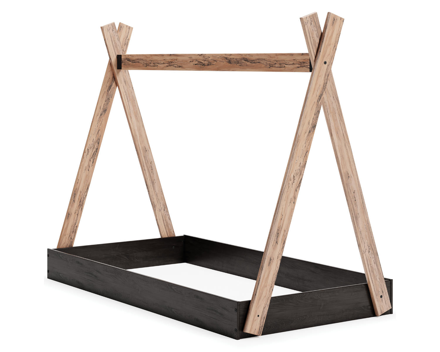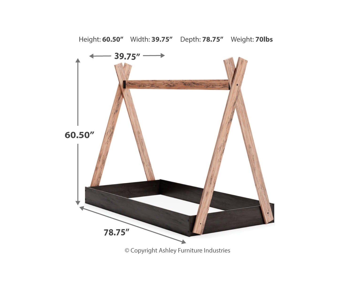 The Piperton Twin Tent Complete Bed in Box combines practical twin-size sleep space with a distinctive tent-inspired silhouette. Designed for bedrooms that value both style and simplicity, this bed comes in a two-tone Brown/Black finish to complement a wide range of decors.