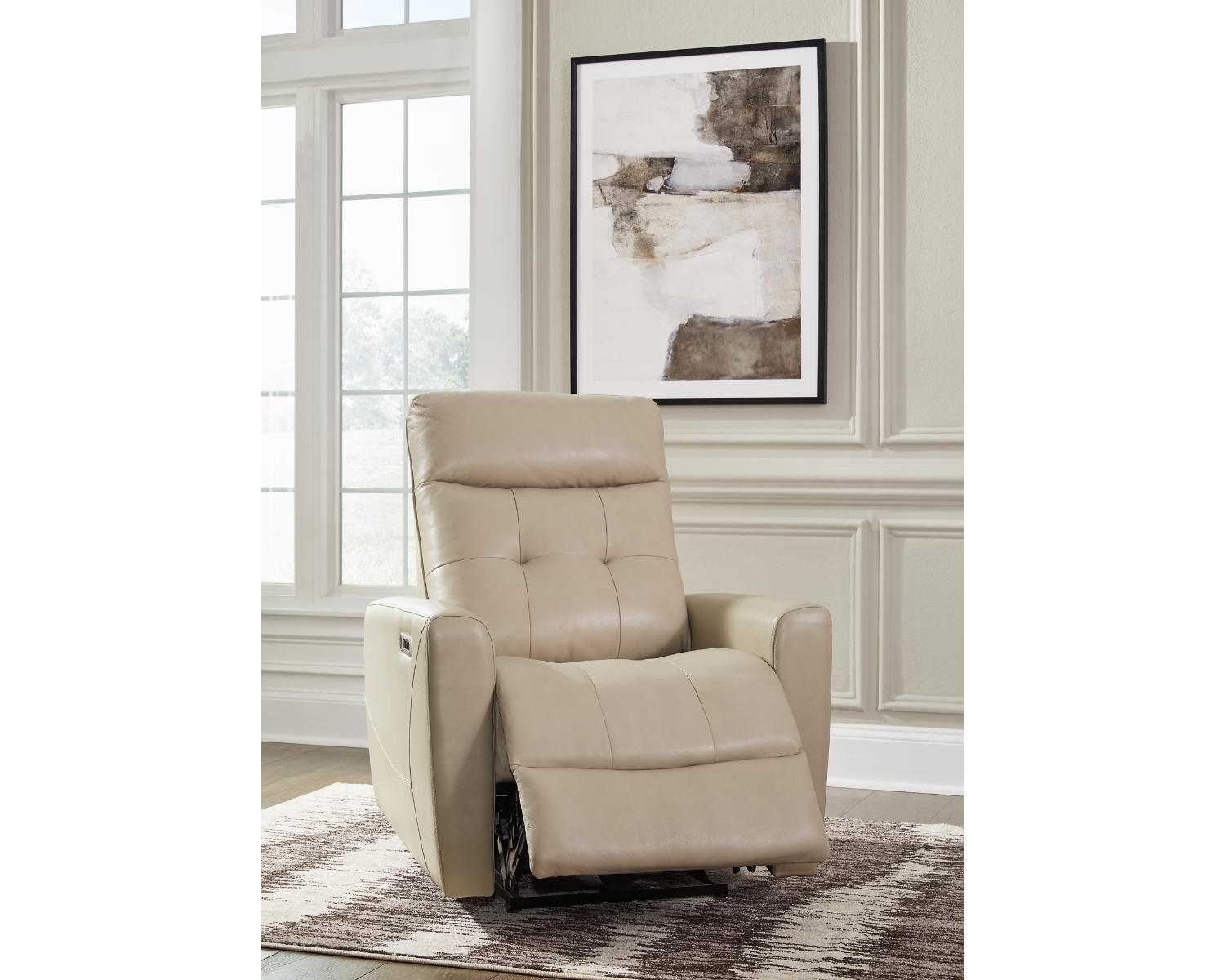 Meet the Pisgham Power Recliner, a modern, motorized seat designed for comfort and convenience. Ideal for living rooms, home theaters, or reading nooks, it puts control at your fingertips with a powered reclining mechanism and an adjustable headrest. Finished in Sand upholstery, this chair offers a versatile look that fits many decors.