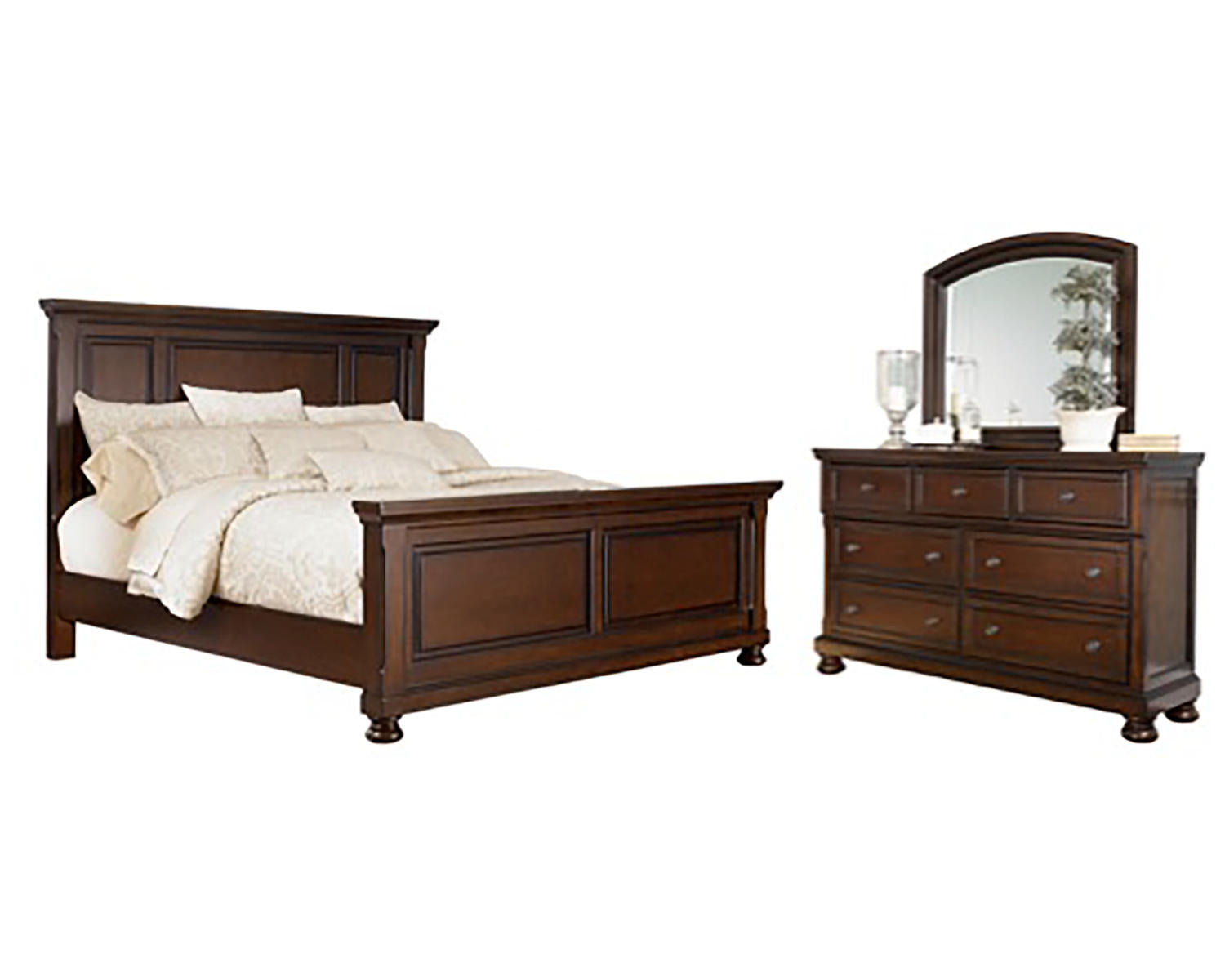 Porter Queen Panel Bed, Dresser and Mirror — Rustic Brown