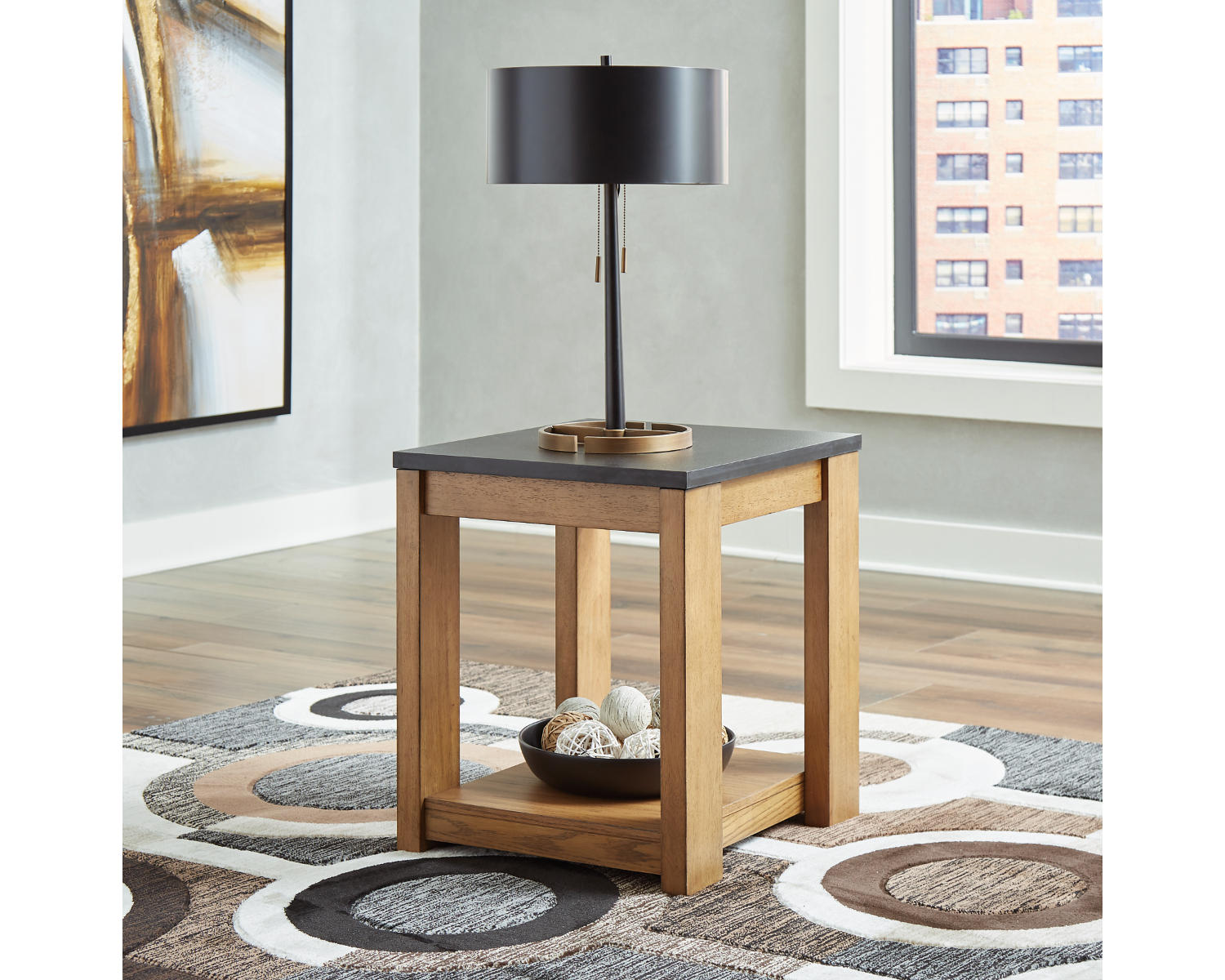 - Shape: Rectangular end table that fits neatly beside a sofa or chair