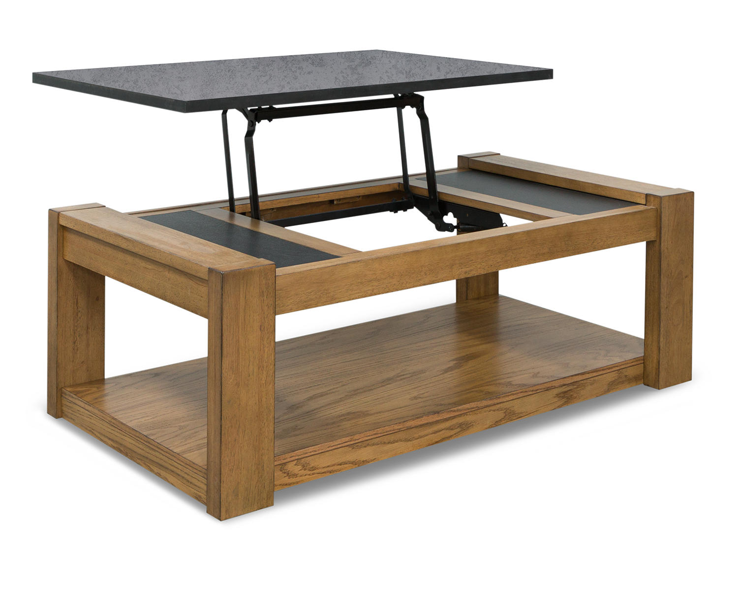 Quentina Lift-Top Coffee Table is a versatile centerpiece for modern living spaces. Designed for small rooms and busy households, it pairs practical lift-top functionality with a sleek light brown and black finish. This table brings a clean, approachable style that fits a wide range of decors.