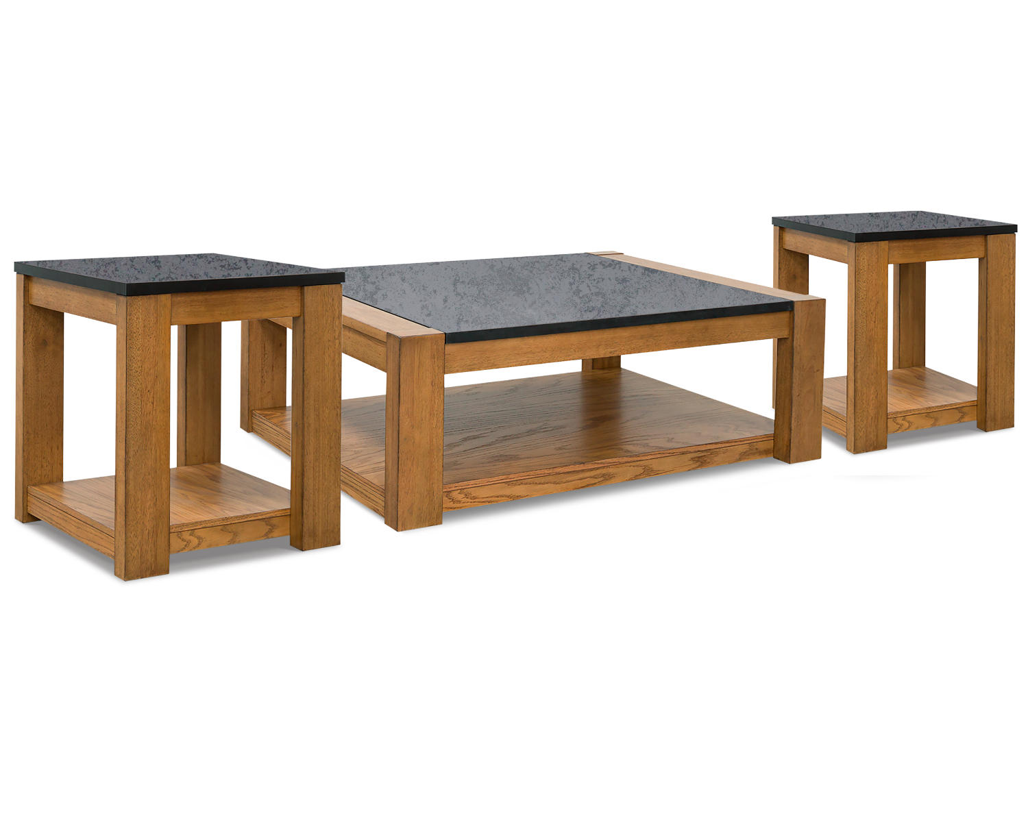 The Quentina Lift-top Coffee Table and 2 End Tables bring a streamlined, modern look to any living space. This three-piece set combines a lift-top coffee table with two end tables, finished in a timeless light brown and black duo. It’s designed for everyday living, offering flexible surface space and cohesive style for apartments, family rooms, or welcoming living areas.