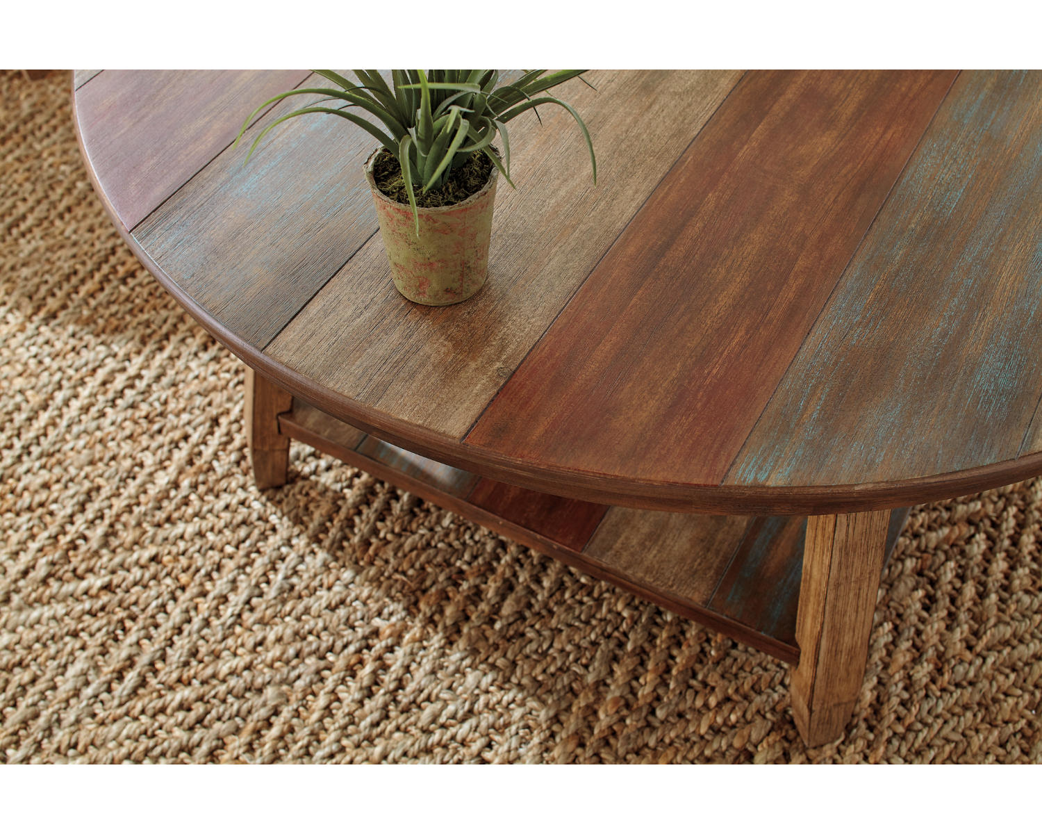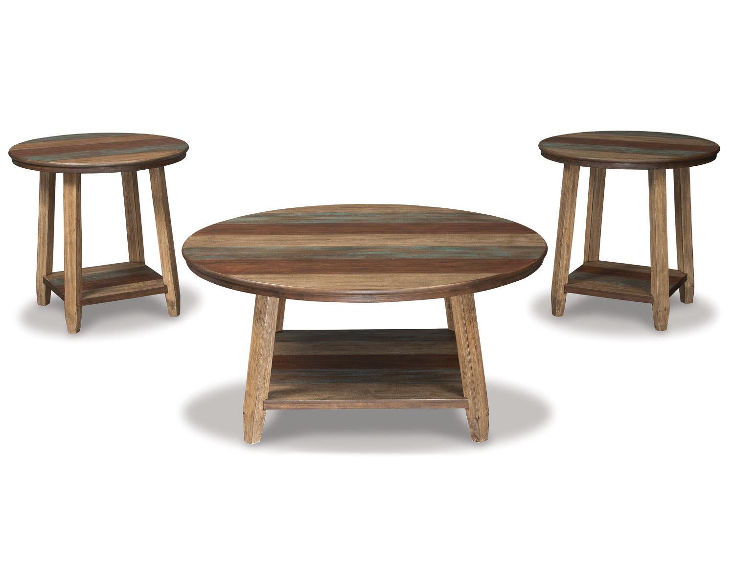 - Three-piece set provides a cohesive trio of tables that can be used together or individually for coffee, side, and display spaces.