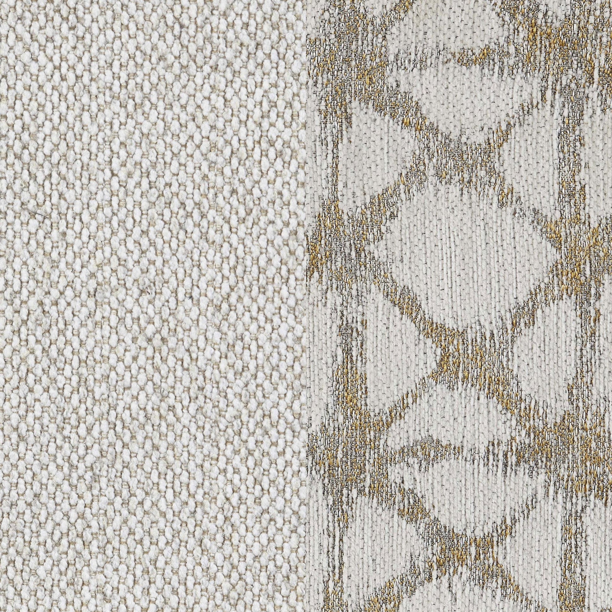 - Boucle upholstery in a warm latte tone for a soft, textured feel.