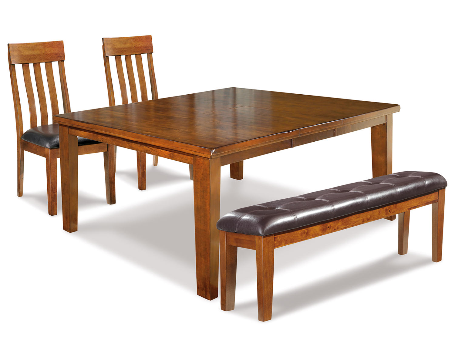 Bring family meals and casual gatherings to life with the Ralene dining set. This complete set includes a dining table, two chairs, and a bench in a warm medium brown finish, making it a versatile fit for kitchens, dining rooms, or breakfast nooks.