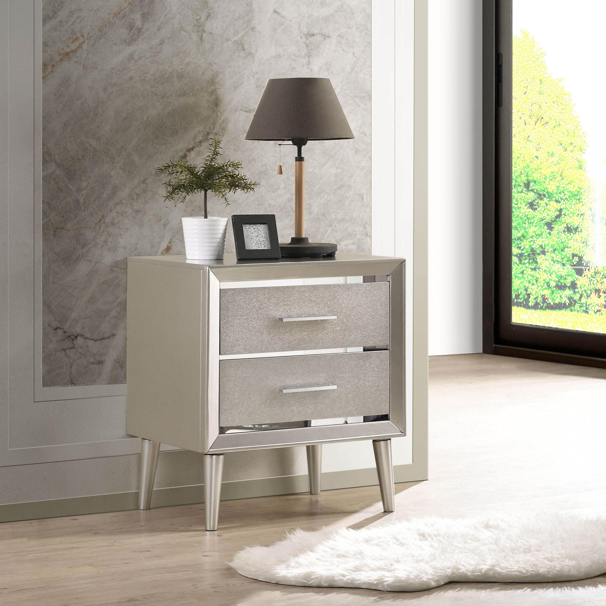 Ramon 2-Drawer Nightstand Metallic Sterling