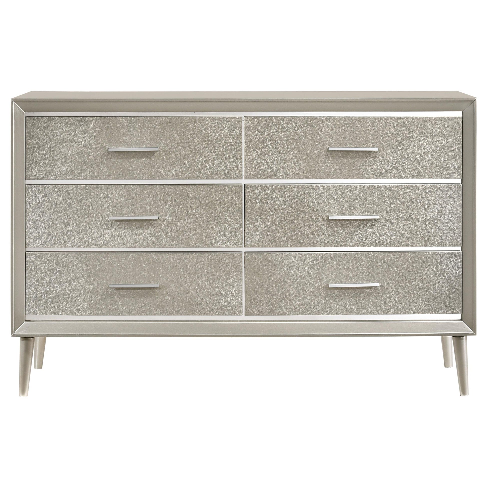 The Ramon 4-piece Eastern King Bedroom Set in Metallic Sterling delivers a cohesive, modern look for a refined master suite. This set is ideal for anyone seeking a stylish, turnkey bedroom solution with a contemporary metallic touch.