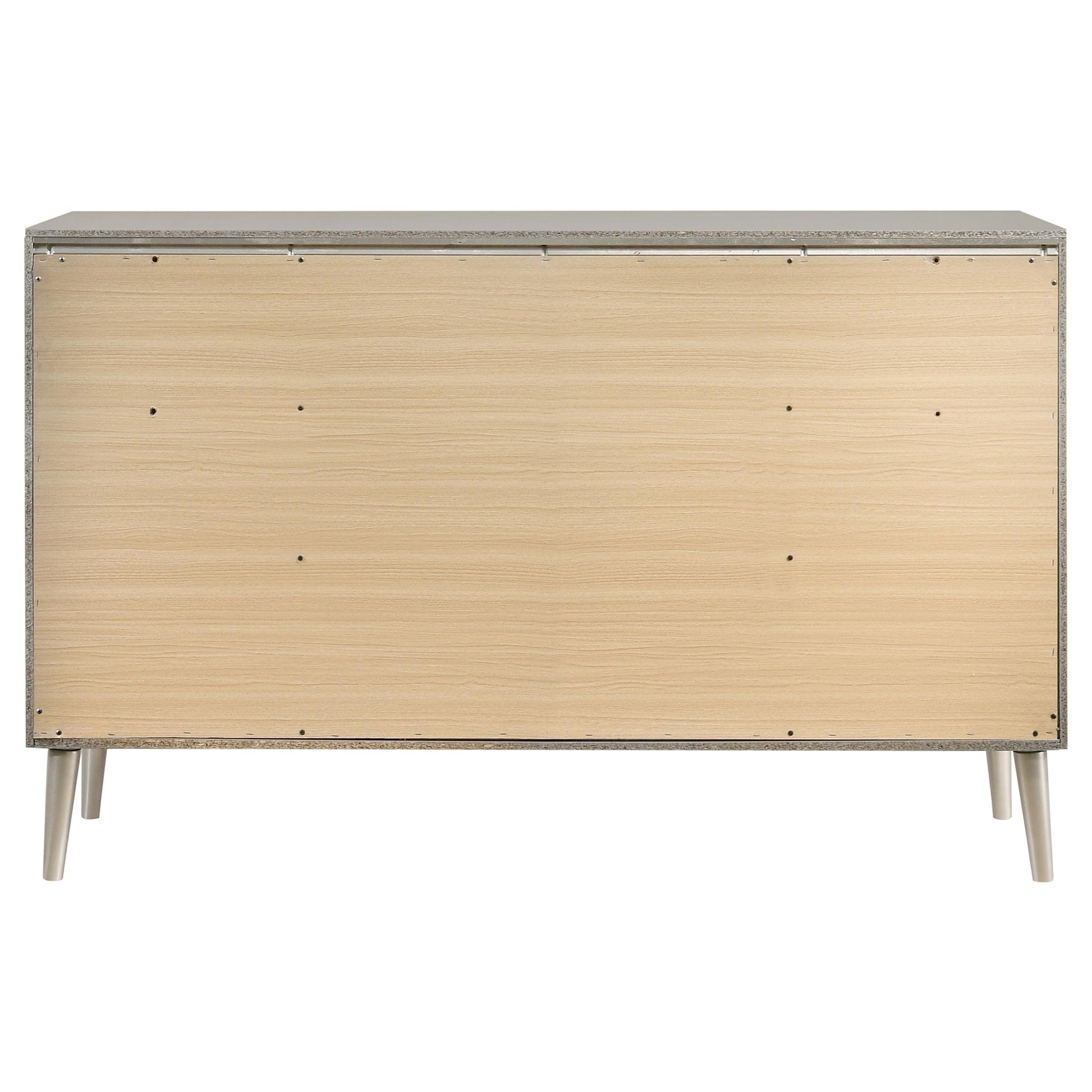 Introducing the Ramon 6-drawer Dresser in Metallic Sterling—a sleek storage solution for bedrooms that blends contemporary style with practical organization. Designed for families and individuals who value clean lines and reliable storage, this dresser offers generous drawer space in a slim, modern silhouette.