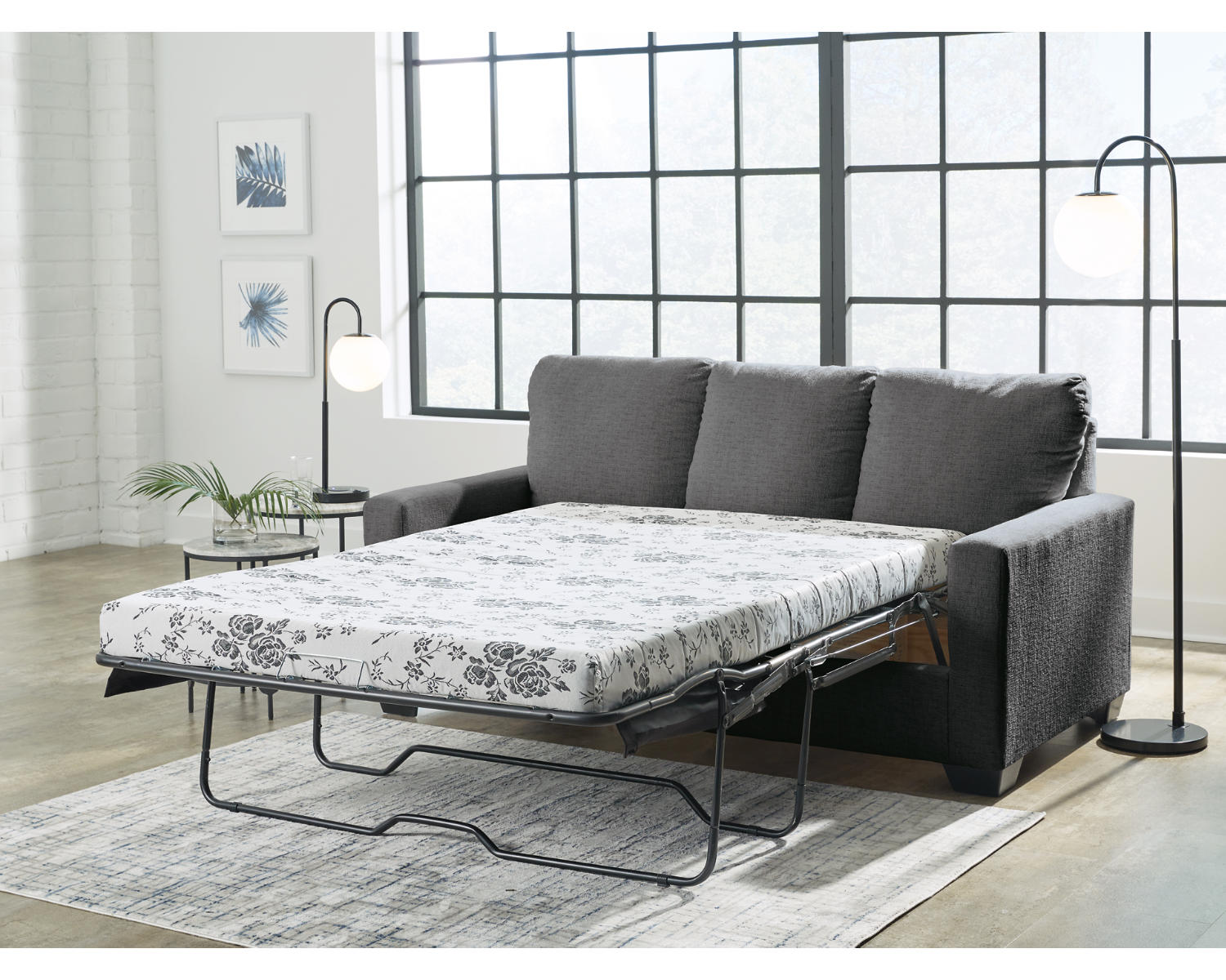 Discover the Rannis Full Sofa Sleeper and Recliner, a versatile all-in-one seating solution designed for living rooms, guest rooms, and compact spaces. This piece delivers comfortable seating, a practical bed, and a built-in recliner in a timeless pewter tone. It’s ideal for hosting guests or relaxing after a long day with clean lines and modern style.