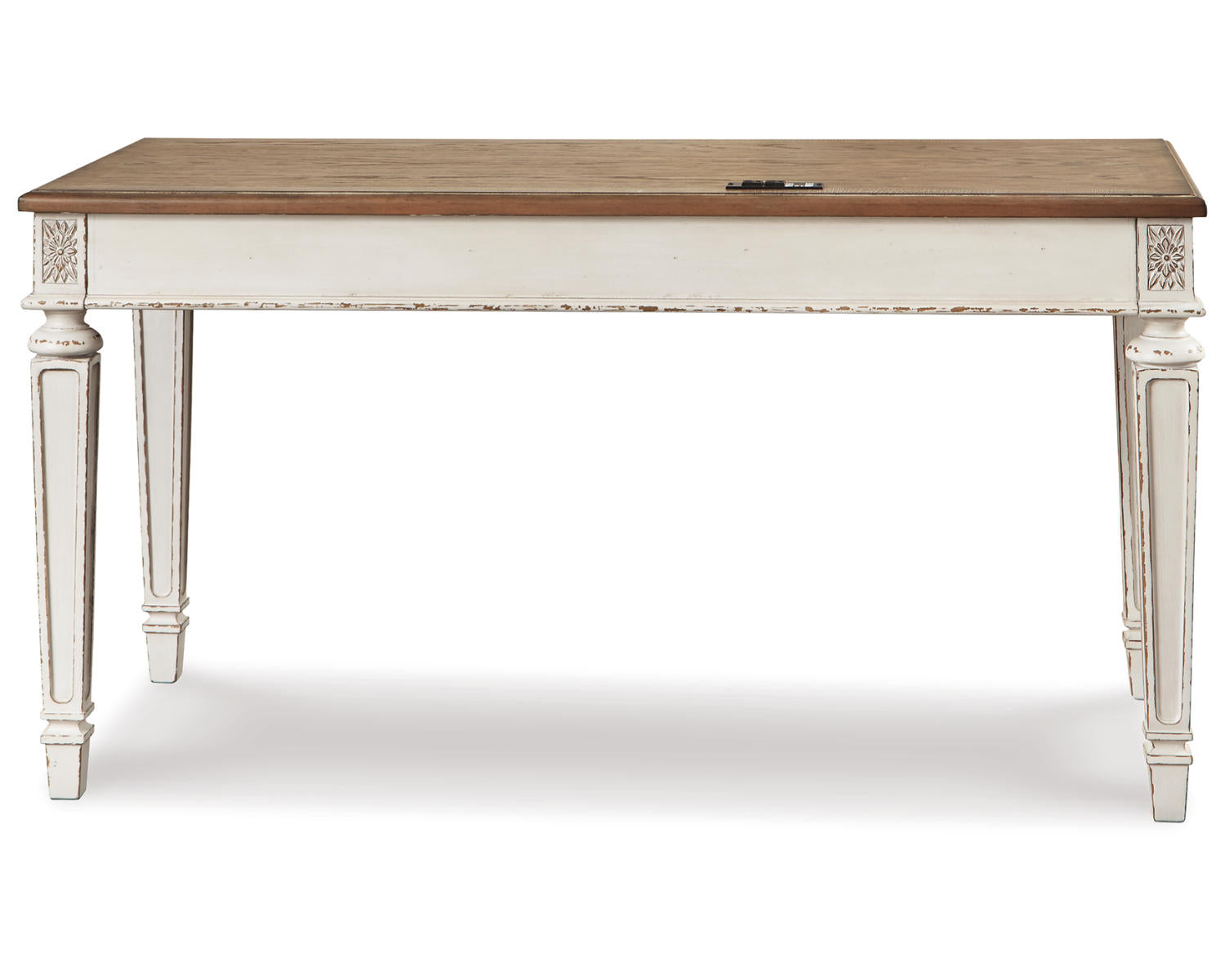 Meet the Realyn 60" Home Office Desk—a versatile workspace crafted for home offices, study corners, and compact professional spaces. In a White/Brown finish, it pairs a bright surface with a warm accent to suit modern and traditional decor.