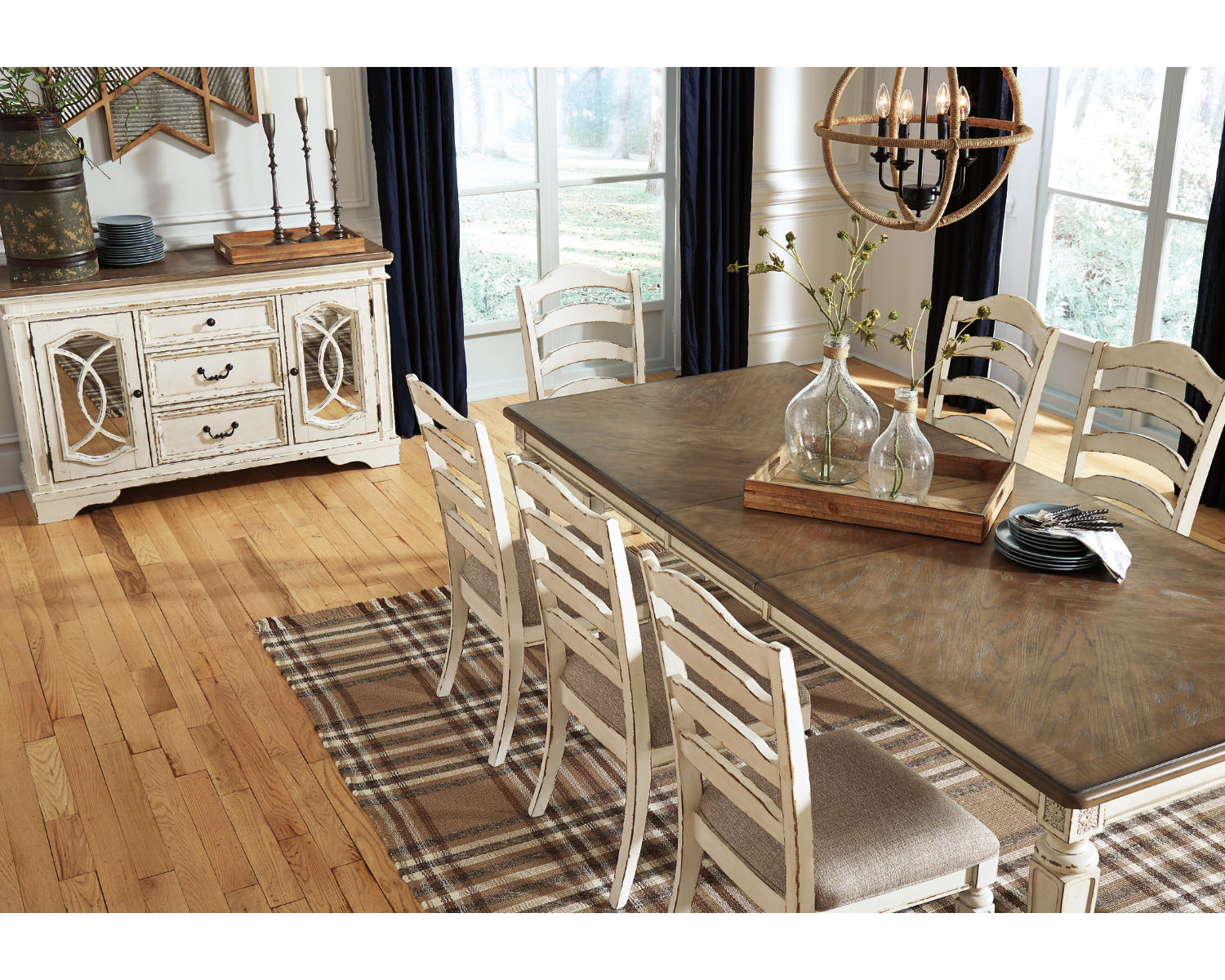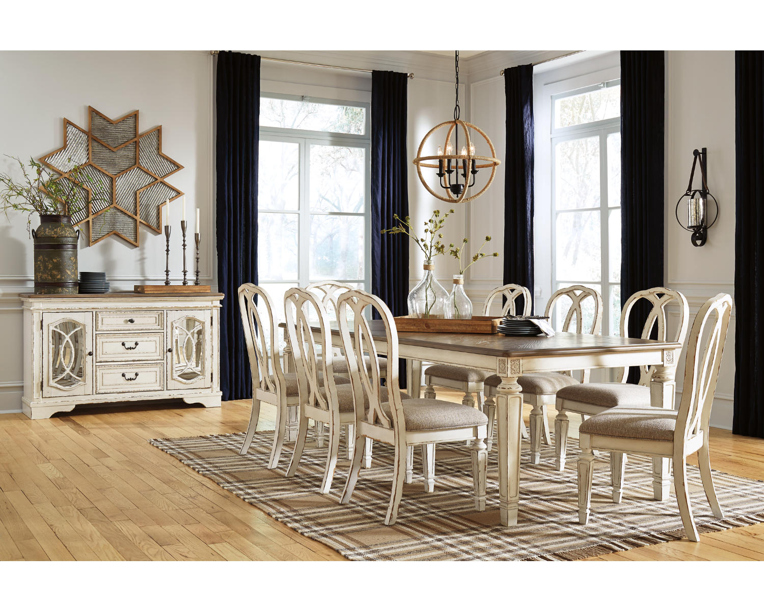 The Realyn Dining Extension Table offers a practical, rectangular solution for family meals and entertaining. Finished in chipped white, it delivers a clean, versatile look that fits a range of dining room styles. Its extension capability lets you accommodate guests with ease, making everyday dining plus special occasions smooth and effortless.