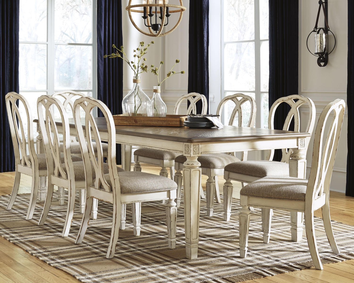 Realyn Dining Extension Table and 8 Chairs – Chipped White
