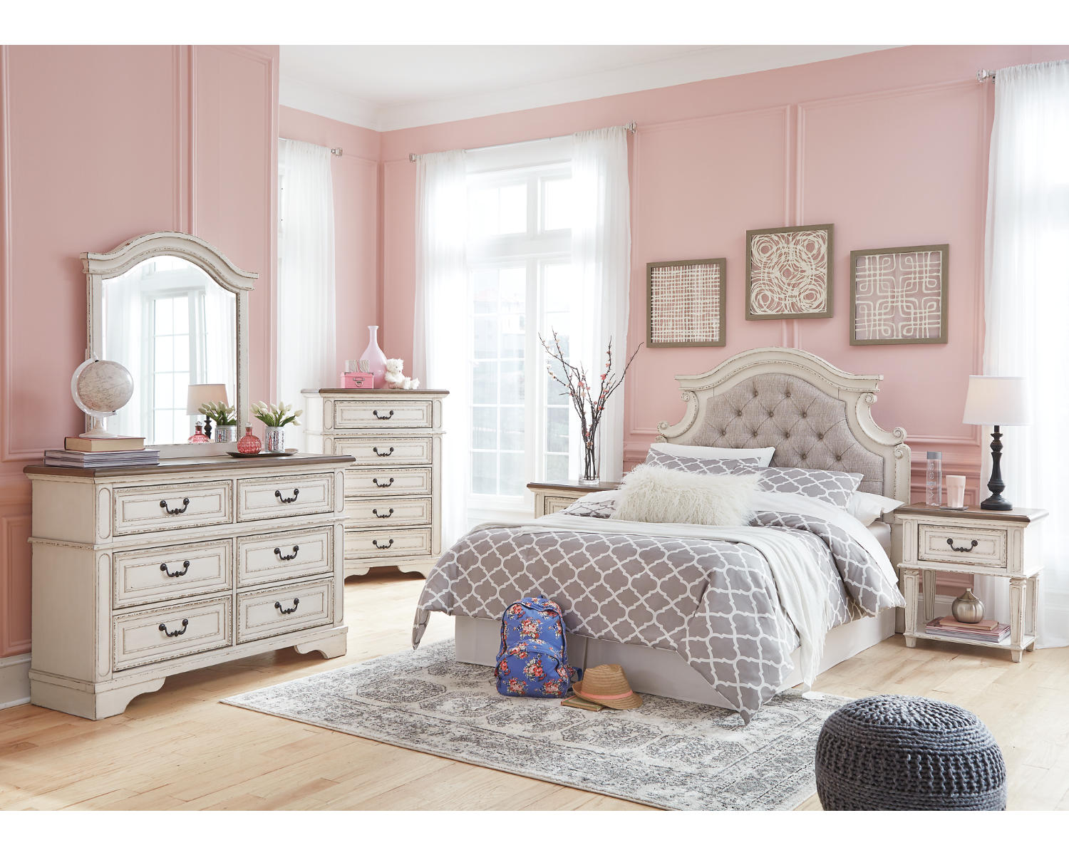 Meet the Realyn Dresser and Mirror, a versatile two-piece set designed to streamline bedrooms with style. The chipped white finish adds vintage charm while remaining easy to pair with a range of decors. This combo is ideal for small to medium spaces that need organized storage and a touch of character.