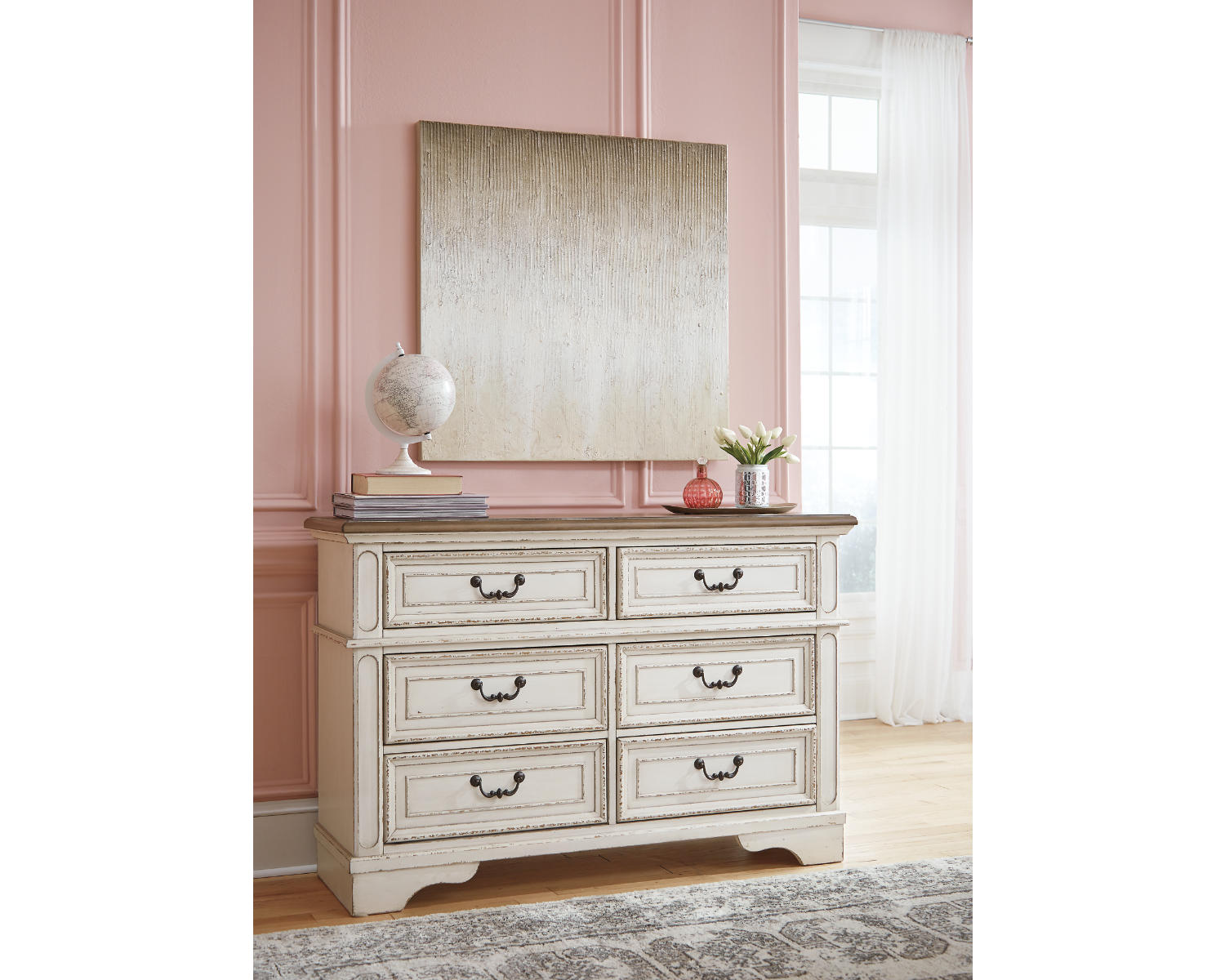 Built for durability and daily use, the Realyn set combines sturdy construction with a timeless aesthetic. The two-tone finish maintains its appeal over time, while offering versatile styling options. This complete bedroom suite delivers strong value with a cohesive look and convenient storage, at a competitive price.