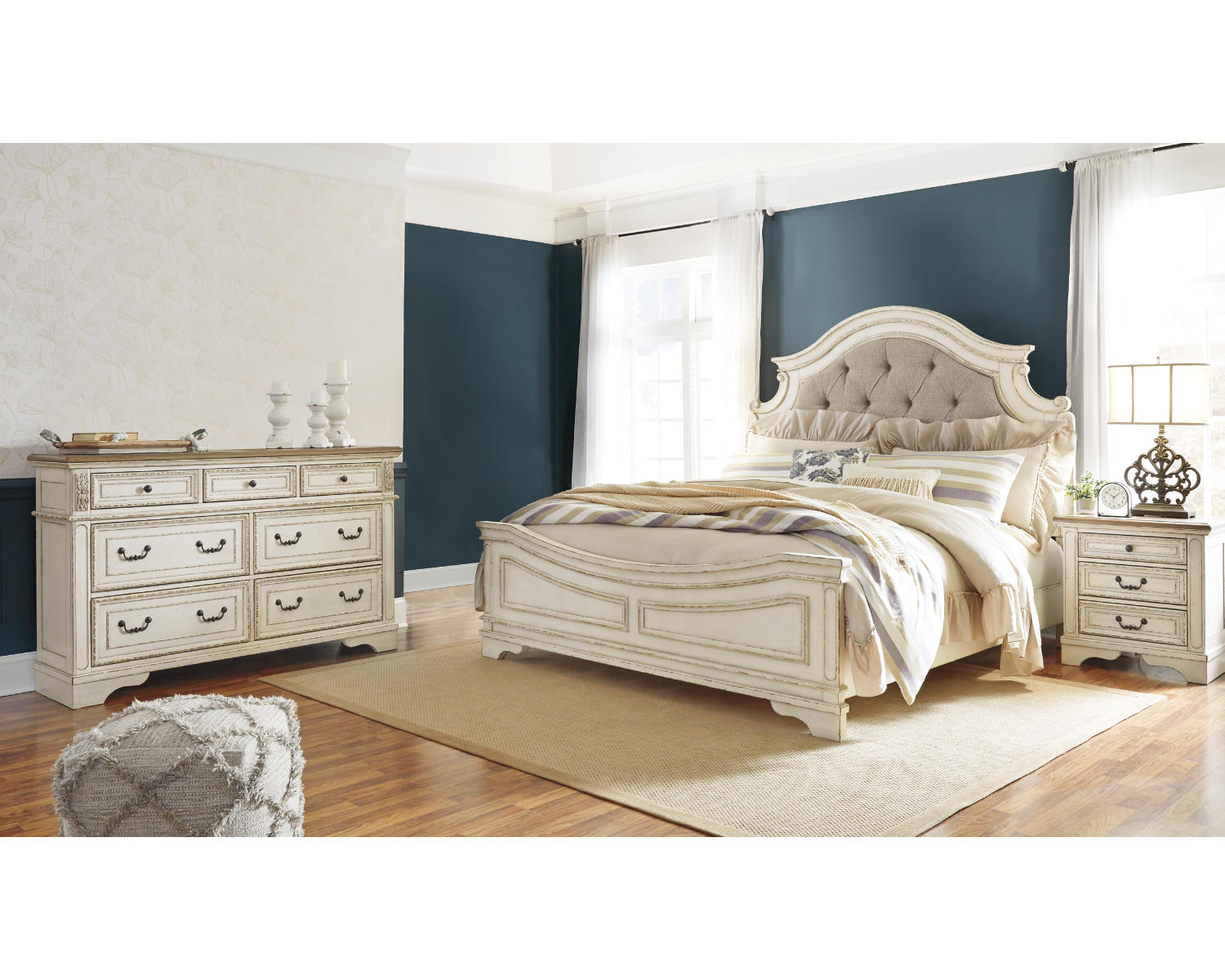Realyn King Upholstered Panel Bed and Dresser
