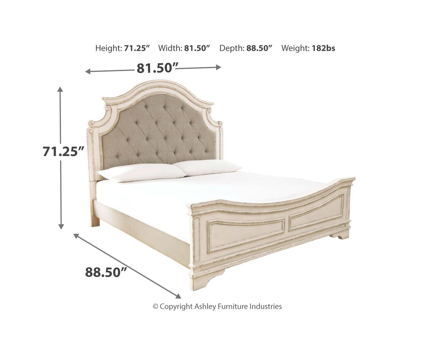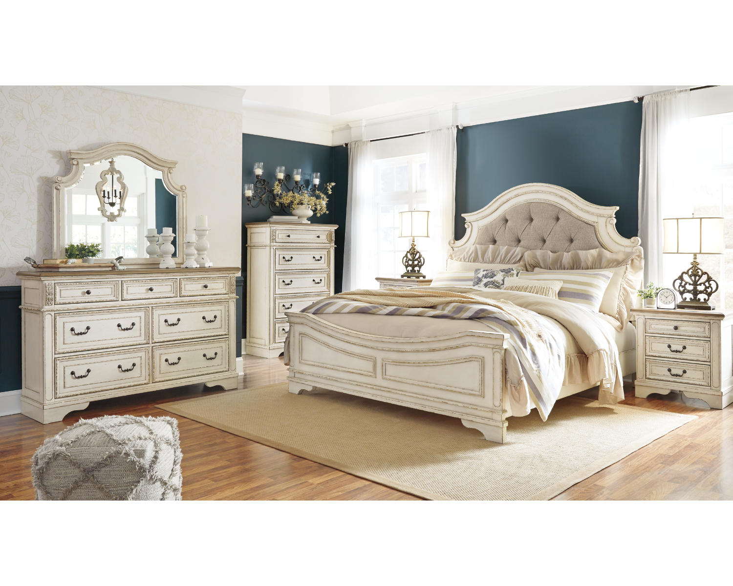 The Realyn suite is built to endure daily use, offering solid stability and reliable performance over time. The coordinated dresser and mirror provide practical storage and a polished centerpiece for the room, reducing the need to source mismatched pieces. With competitive pricing for a complete, two-tone king bedroom set, Realyn delivers strong value without compromising on quality or style.