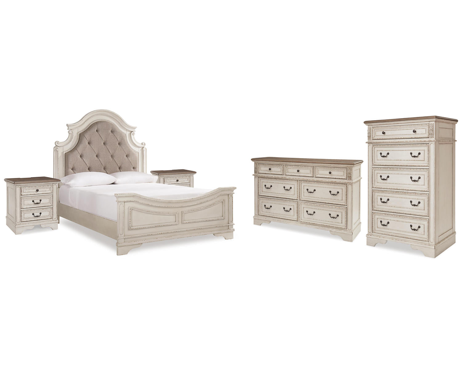 Realyn Queen Panel Bed, Dresser, Chest and 2 Nightstands