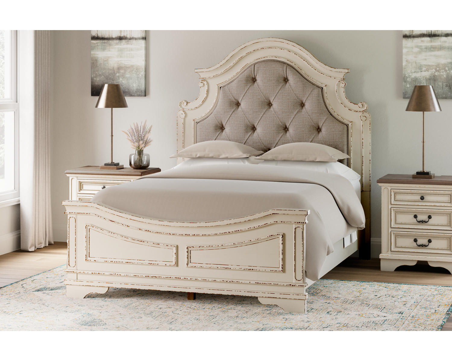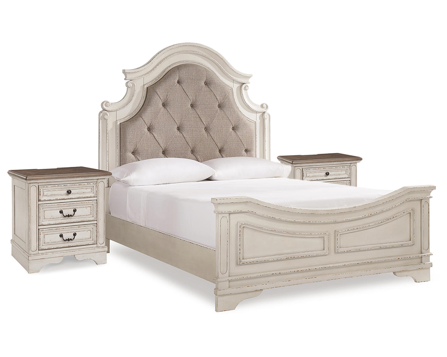 Realyn Queen Upholstered Panel Bed and 2 Nightstands