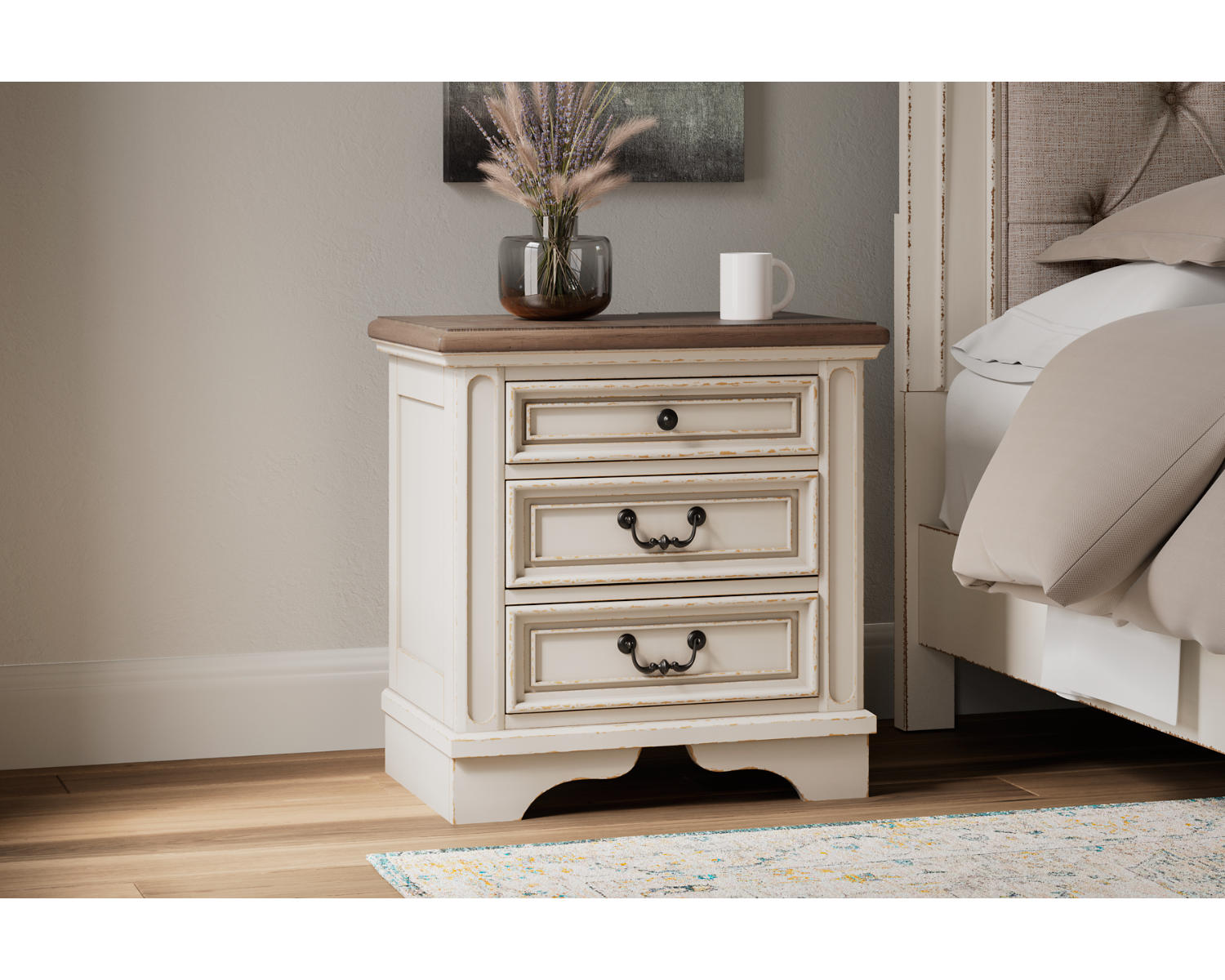 Meet the Realyn Queen Upholstery Panel Bed and matching dresser, chest, nightstand, and vanity set. This two-tone collection blends an upholstered headboard with clean panel lines for a timeless, contemporary bedroom. It’s designed for those who want a cohesive, stylish suite with practical storage and everyday comfort.