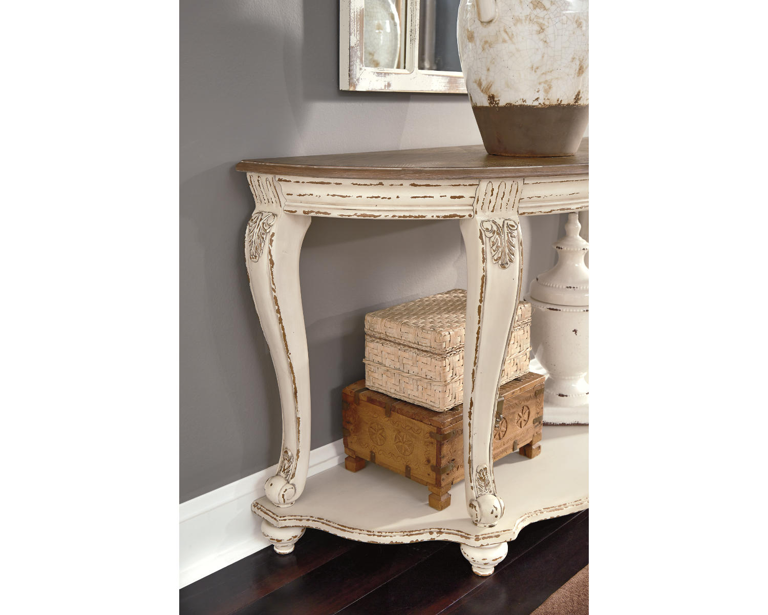 Meet the Realyn Sofa Table—a versatile piece designed to elevate living rooms and entryways. With a crisp white and brown finish, it adds a touch of modern warmth while keeping essentials within reach.