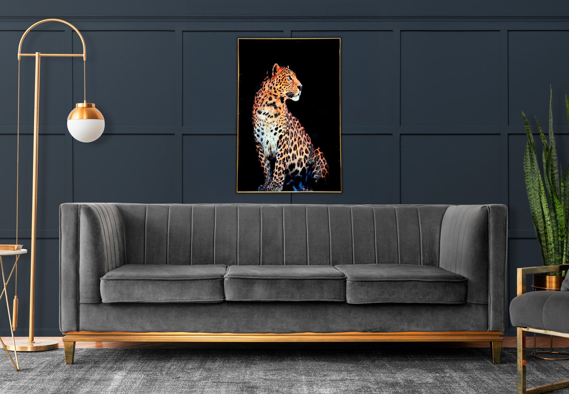 A striking portrayal of a leopard in stunning detail, this artwork captures power, mystery, and untamed beauty. It’s designed to be a bold centerpiece for any room, inviting admiration from wildlife art enthusiasts and casual admirers alike. The piece adds depth and drama to living spaces, offices, or galleries with its compelling presence.