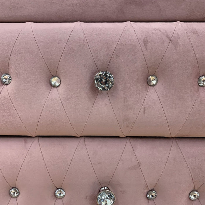 - Competitive pricing for a pink, upholstered four-drawer chest of this size delivers strong value without sacrificing quality.