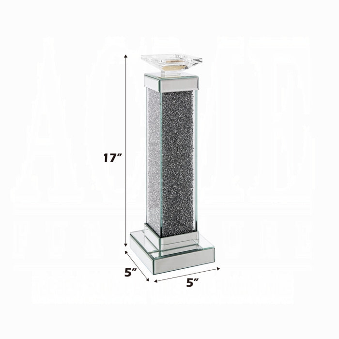 Meet the Rekha Candle Holder Set—two refined pieces designed to fill your space with a warm glow and the look of natural light. Perfect for modern homes, these holders create a welcoming centerpiece on a coffee table, mantel, or dining table. The combination of manufactured wood, a mirrored frame with beveled edges, and acrylic inlay adds a touch of contemporary elegance to any decor.
