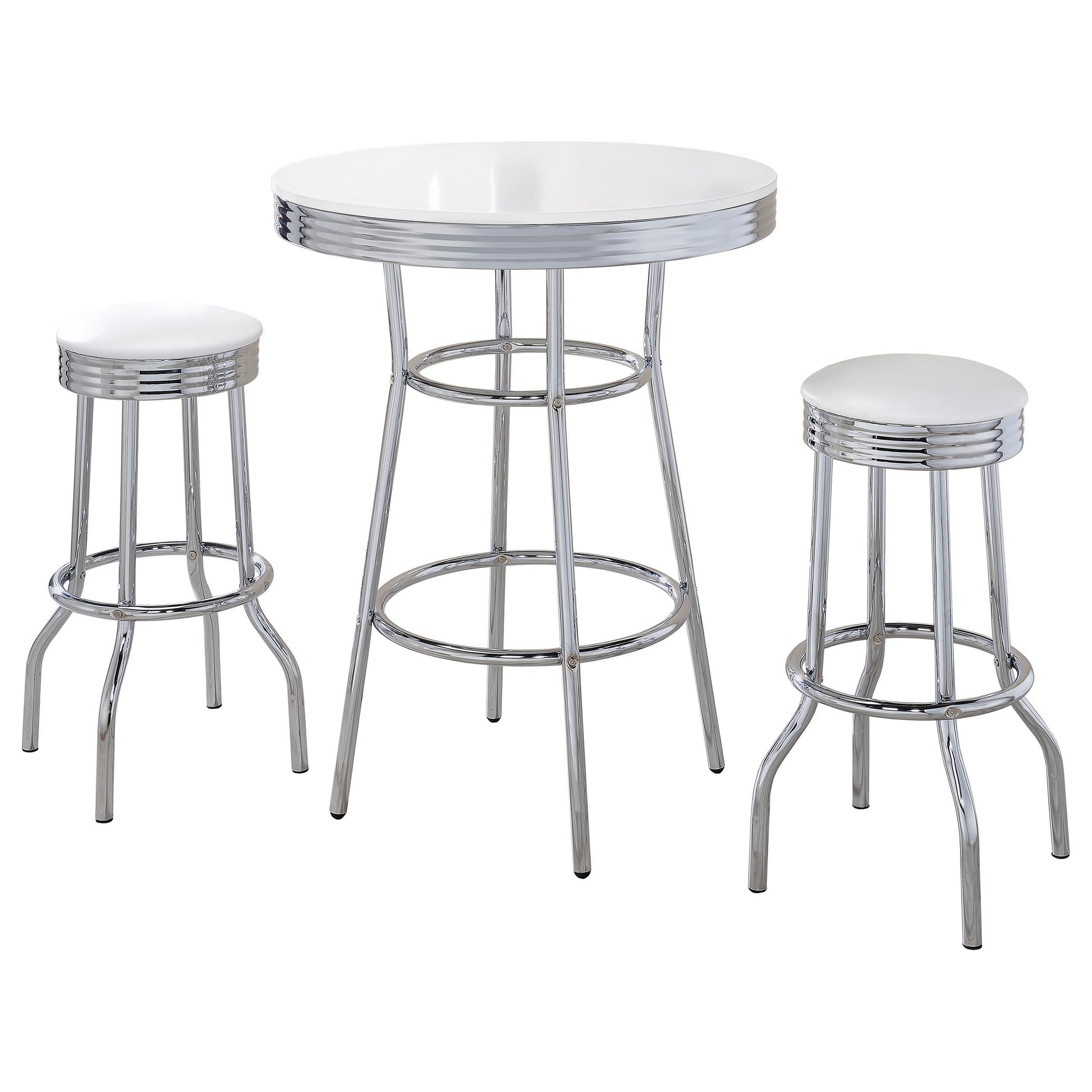 Retro 3-piece Round 1950s Bistro Pub Bar Table Set White