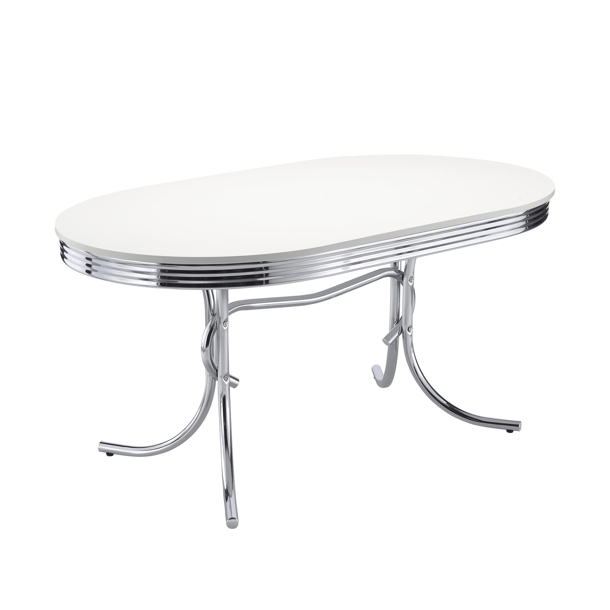Retro Oval 60-inch Wood Top Dining Table White and Chrome